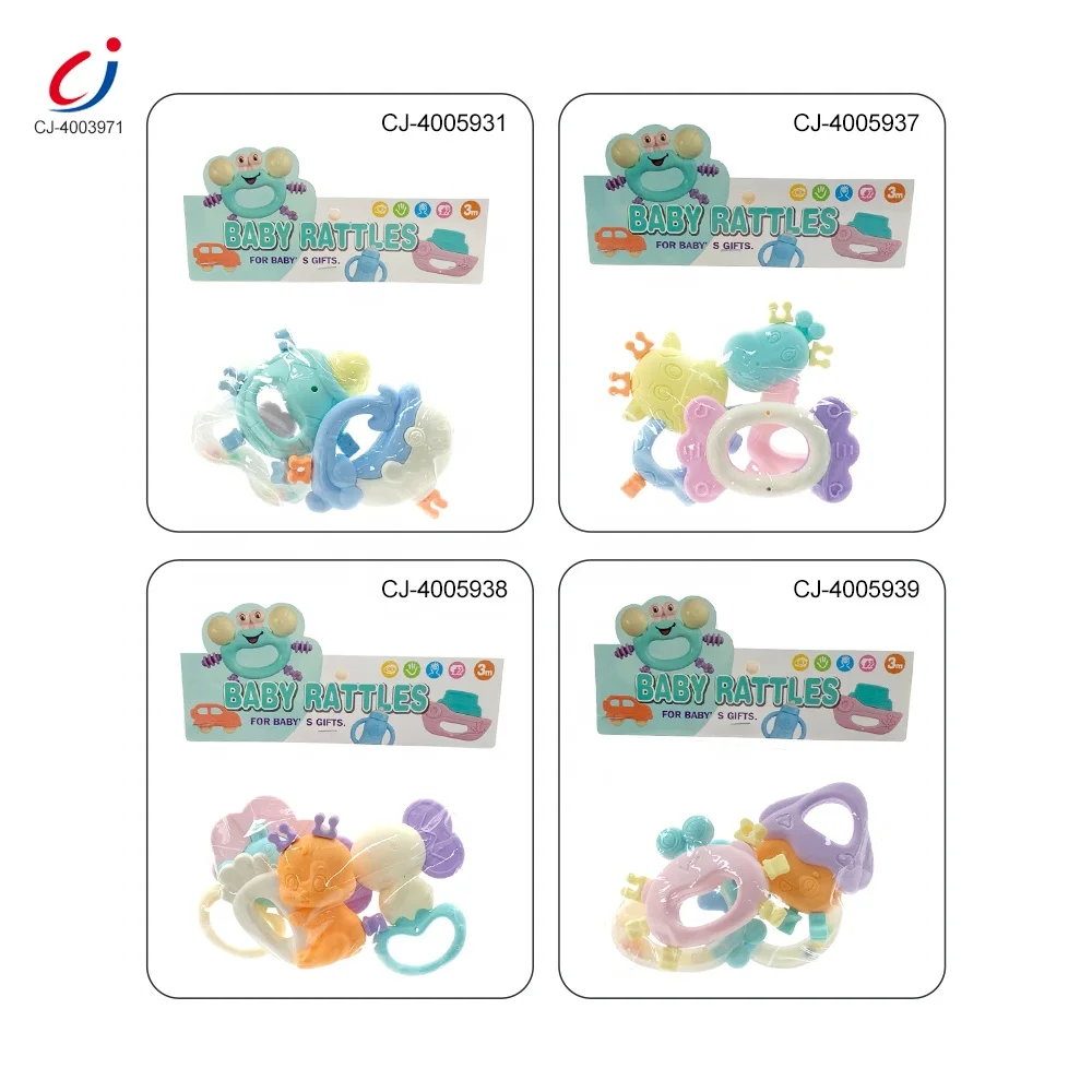Chengji 5pcs New Design Sensory Baby Teething Rattle Toys Set Soft Boilable Baby Rattles Toys for Newborn Sensory Toy