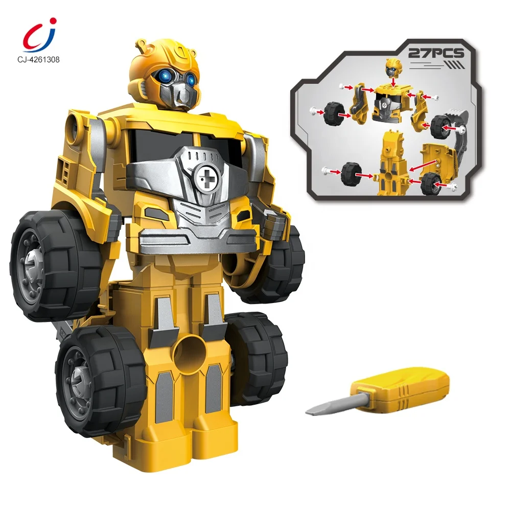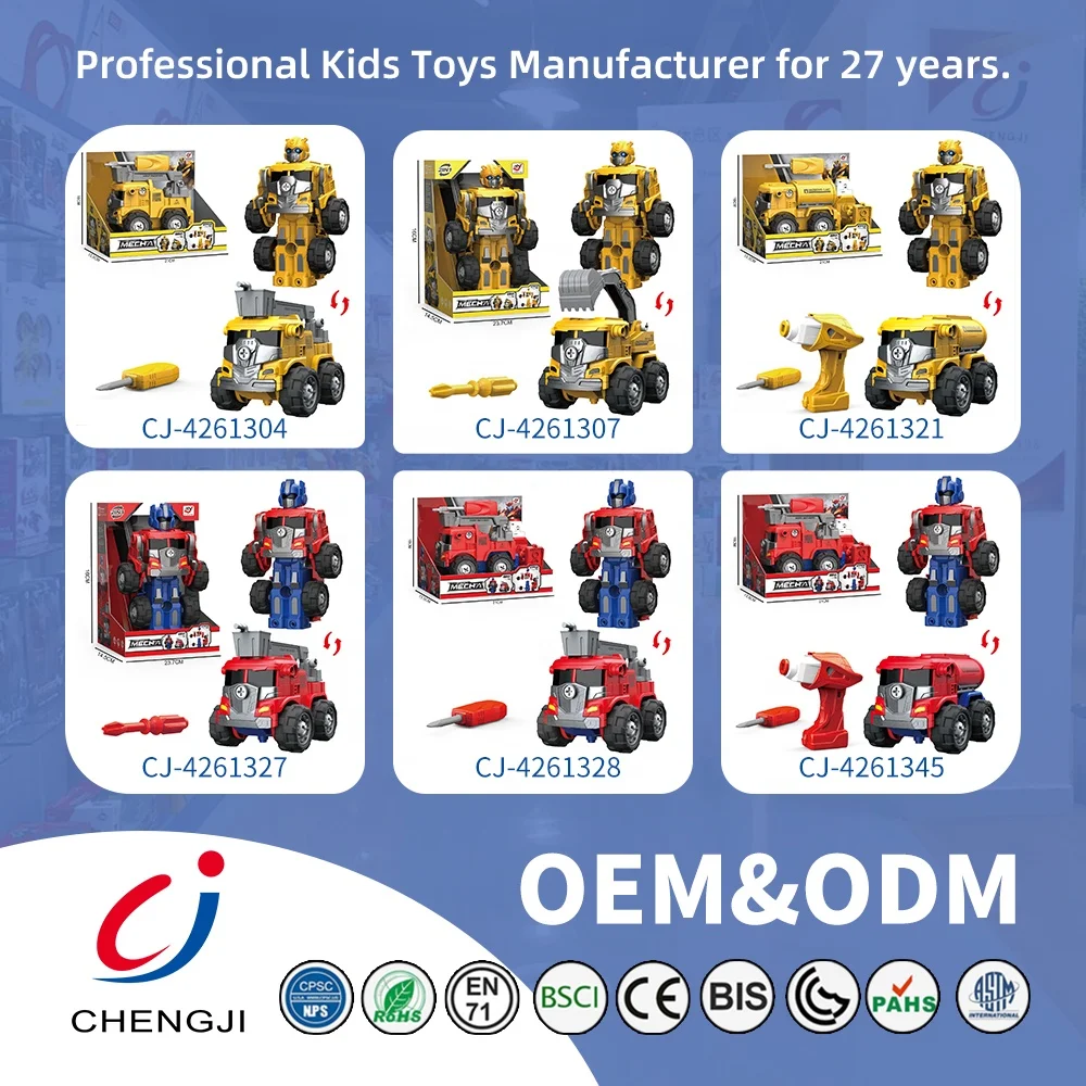 Chengji Educational Boys 2 in 1 Deformable Transporter Vehicle Toys Diy Disassembly Toy Crane Truck Set for Kids