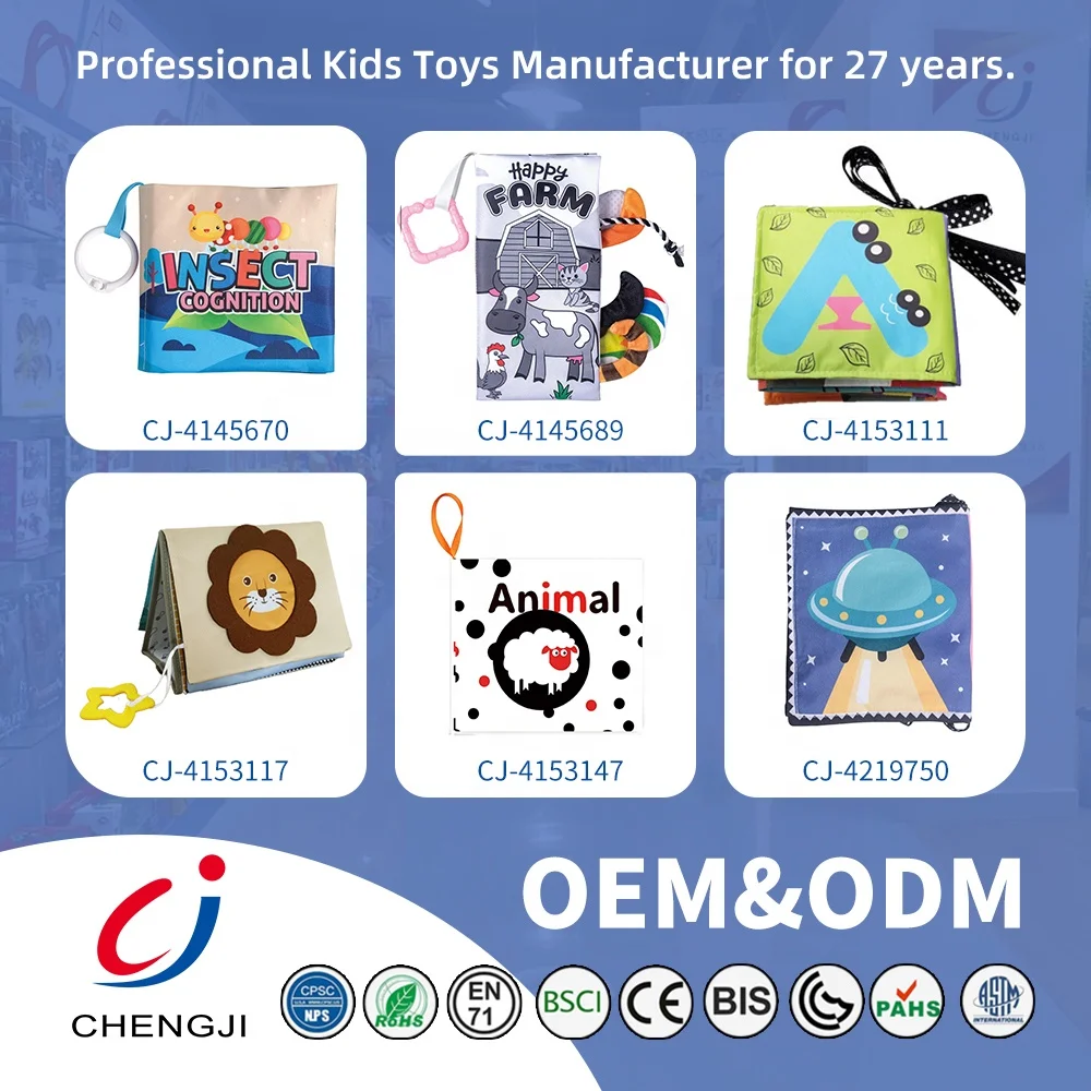 Chengji Children Tail Cloth Book Montessori Baby Cognitive Enlightenment Cartoon Animal Sensory Touchable Cloth Book with Sound