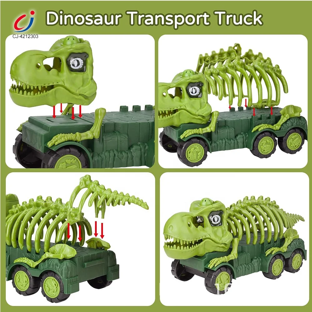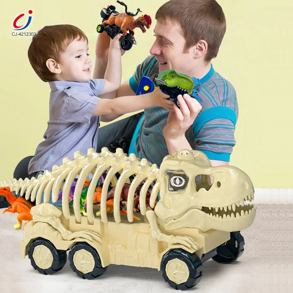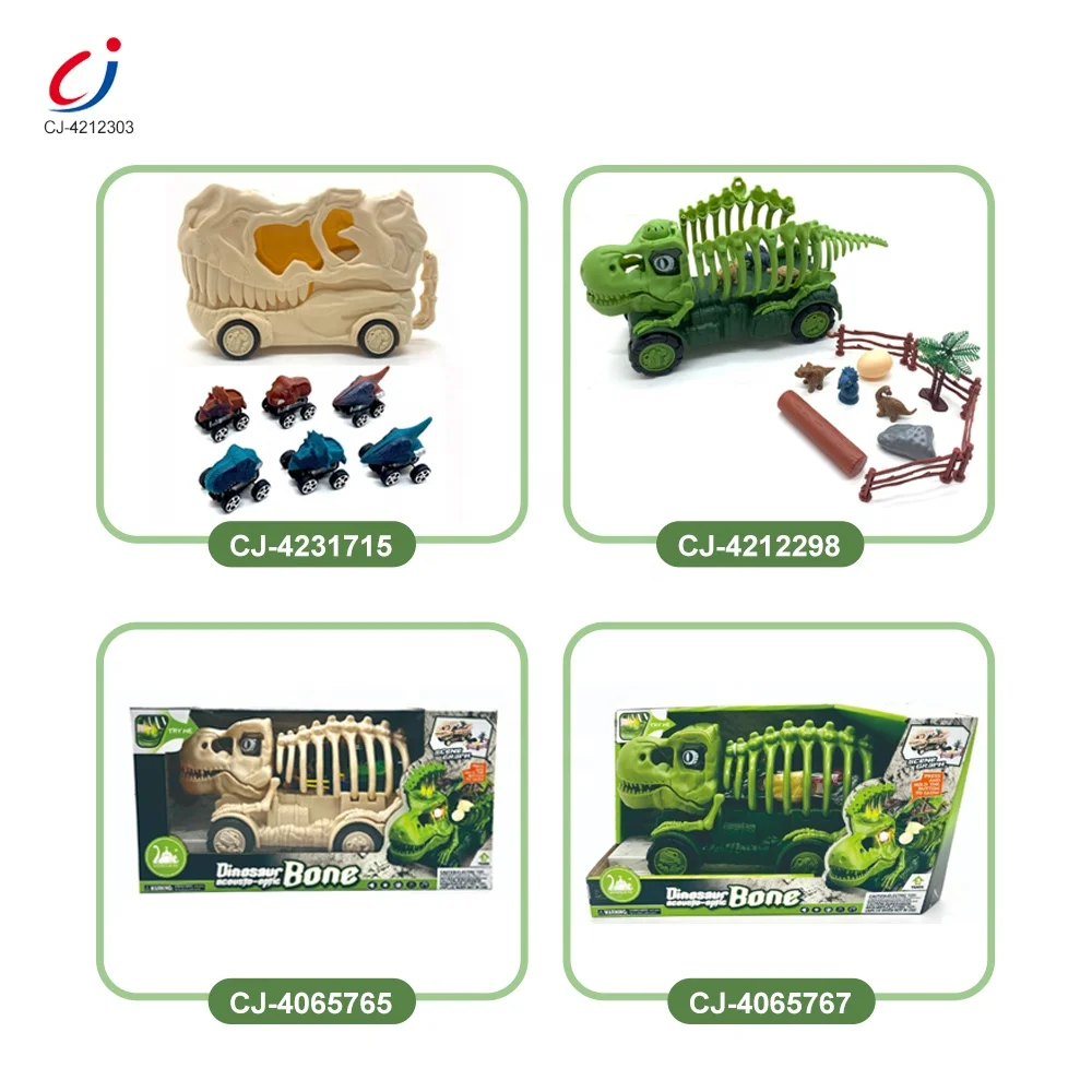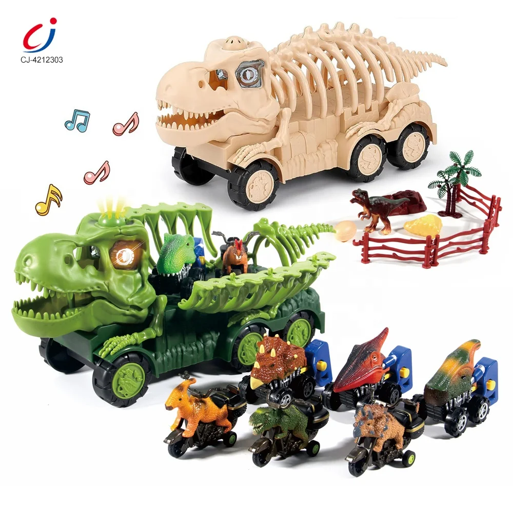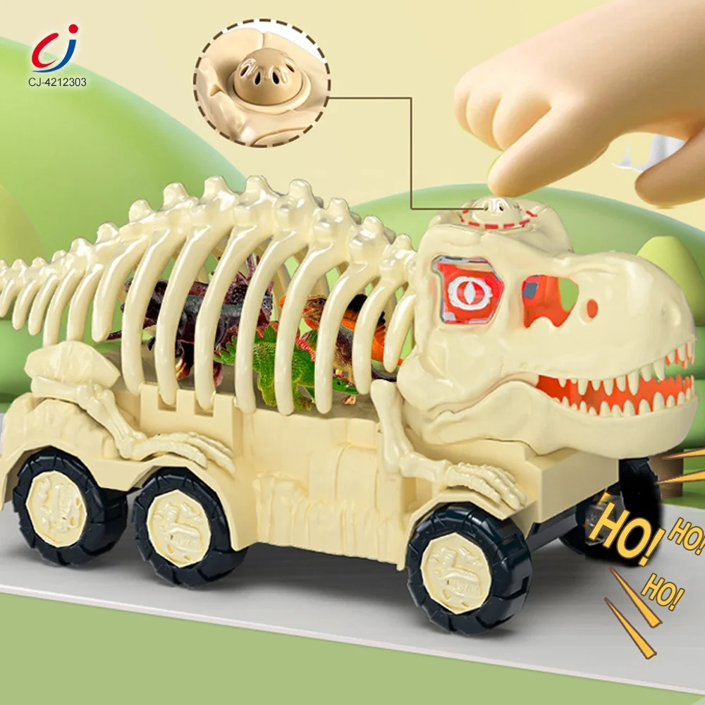 Chengji New Design Pull-back Vehicle Storage Acousto-optic Dino Skeleton Truck Toy Set Ejection Dinosaur Car Toys for Boys