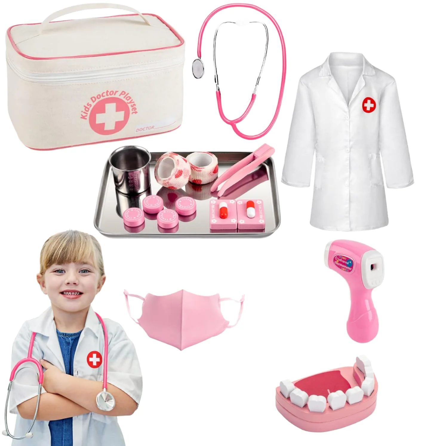 Kids Medical Kit Toy Set Plastic Doctor Pretend Play Includes Stethoscope and Coat with Storage Bag for Girls Toddler