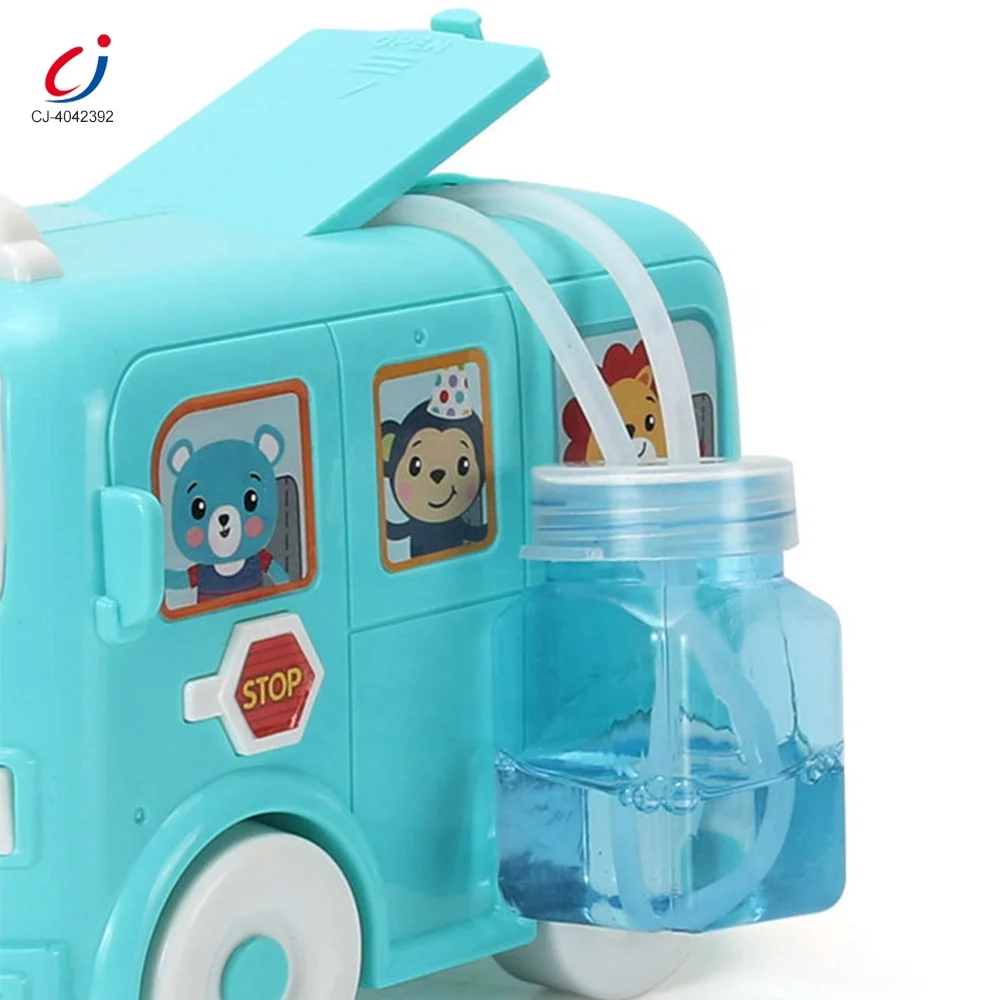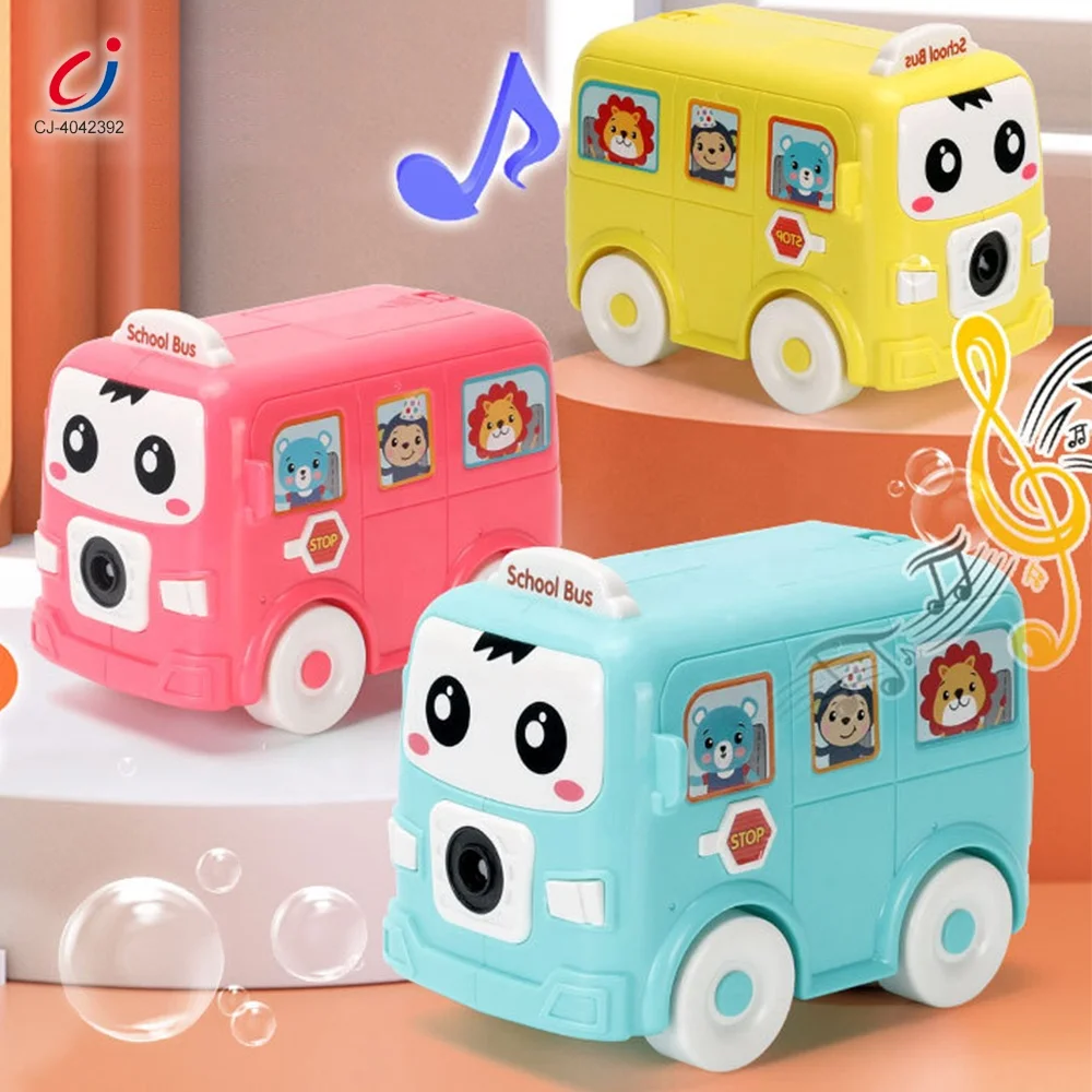 Chengji Kids Battery Operated School Bus Bubbles Maker Machine Toy Electric Musical Sliding Bubble Car Toys with Light
