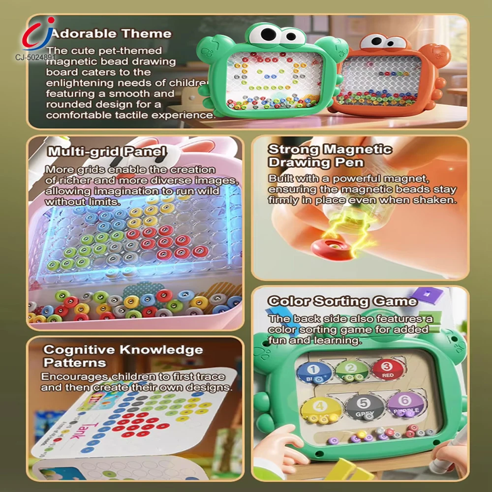 Chengji Magnetic Drawing Baby Puzzles Colorful Crab Plastic Puzzle Educational Toy Magnetic Bead Board Kids Drawing Board