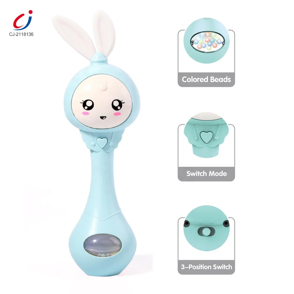 Chengji Hot Sale Rabbit Shape Educational Electronic Musical Rattle Shake Toy Baby Teether Rattle Bell