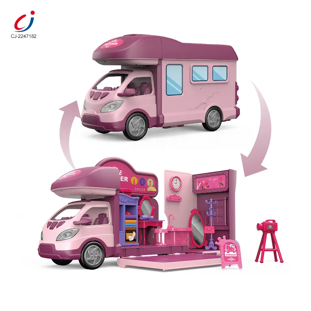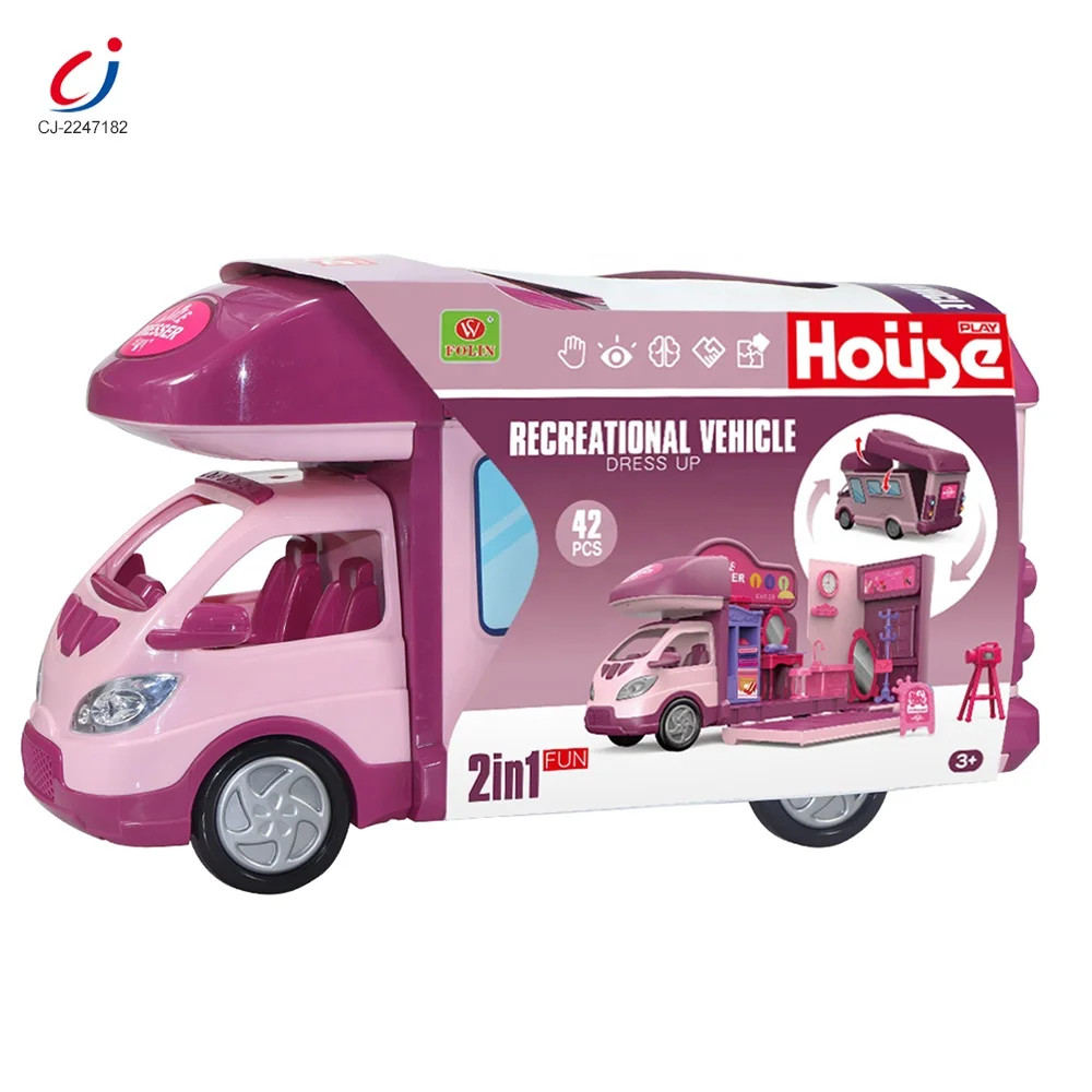 2 in 1 Recreational Vehicle Car Makeup Game Pretend Play Children Kids Play Make up Set Play House Dressing Table Toy