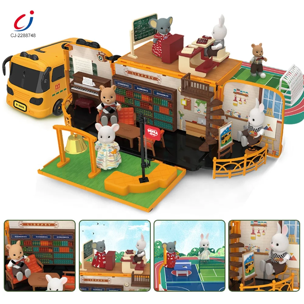 DIY Doll House Toys Set Kids Pretend Play Doll House Furniture Toys School Bus Deform Dream Car Educational Play House Toy