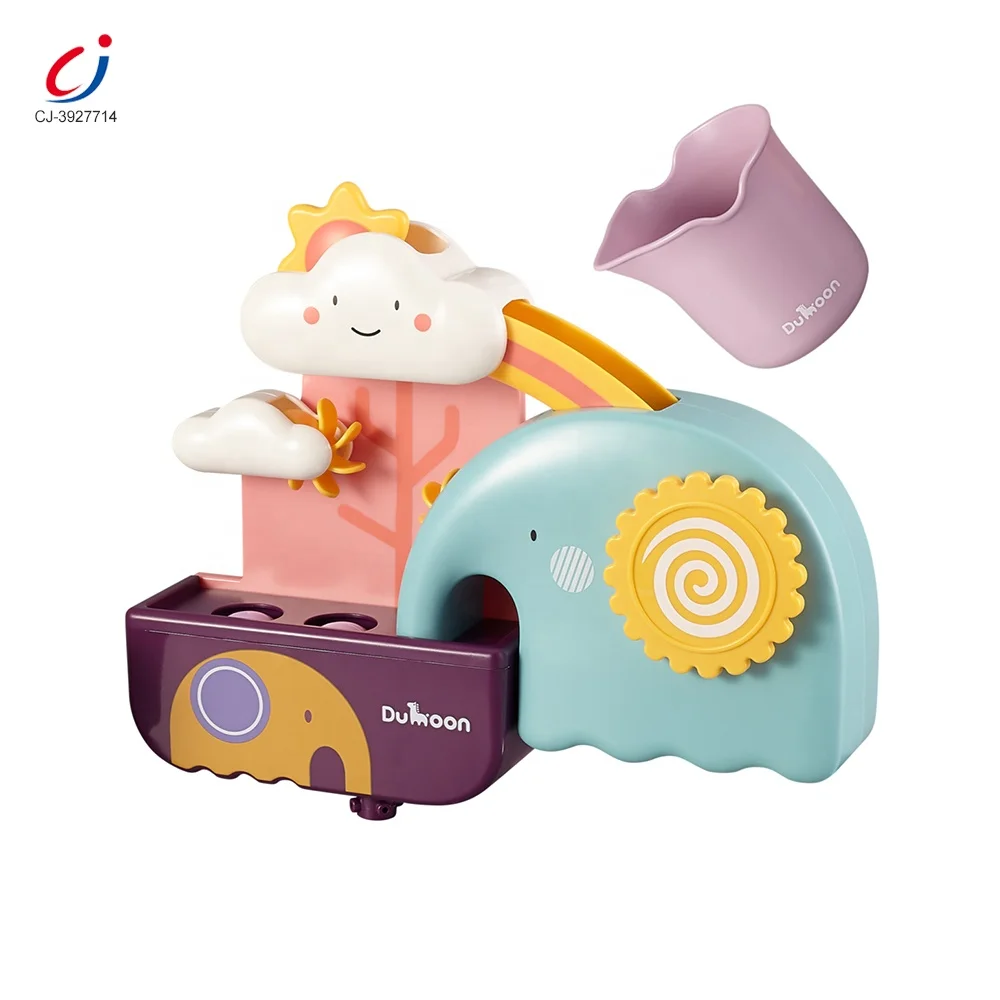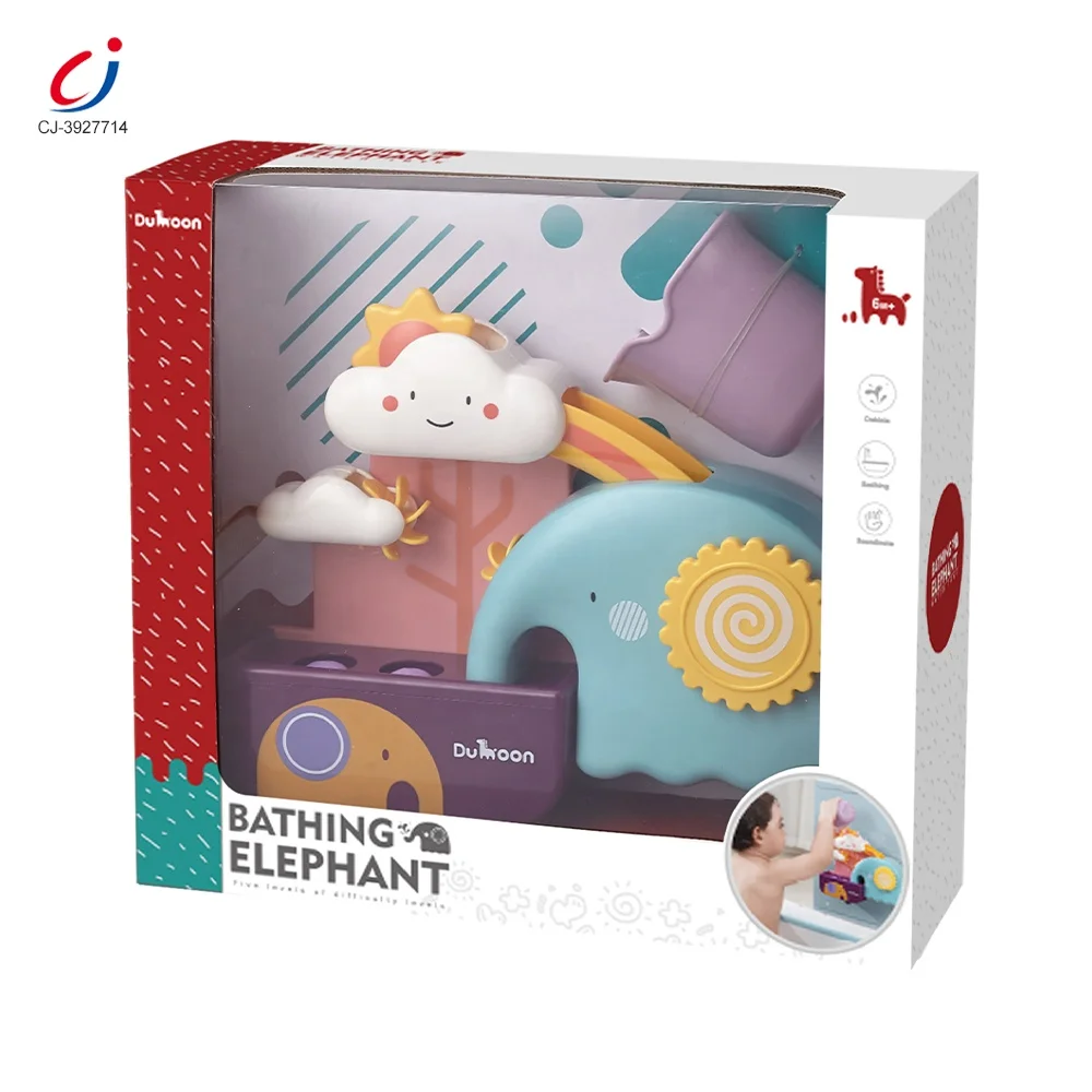 Chengji Eco-friendly Bathroom Shower Water Squirt Bath Toys Suction Cups Plastic Cute Elephant Sprinkler Bath Toys for Toddlers