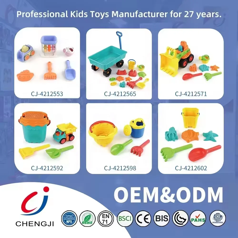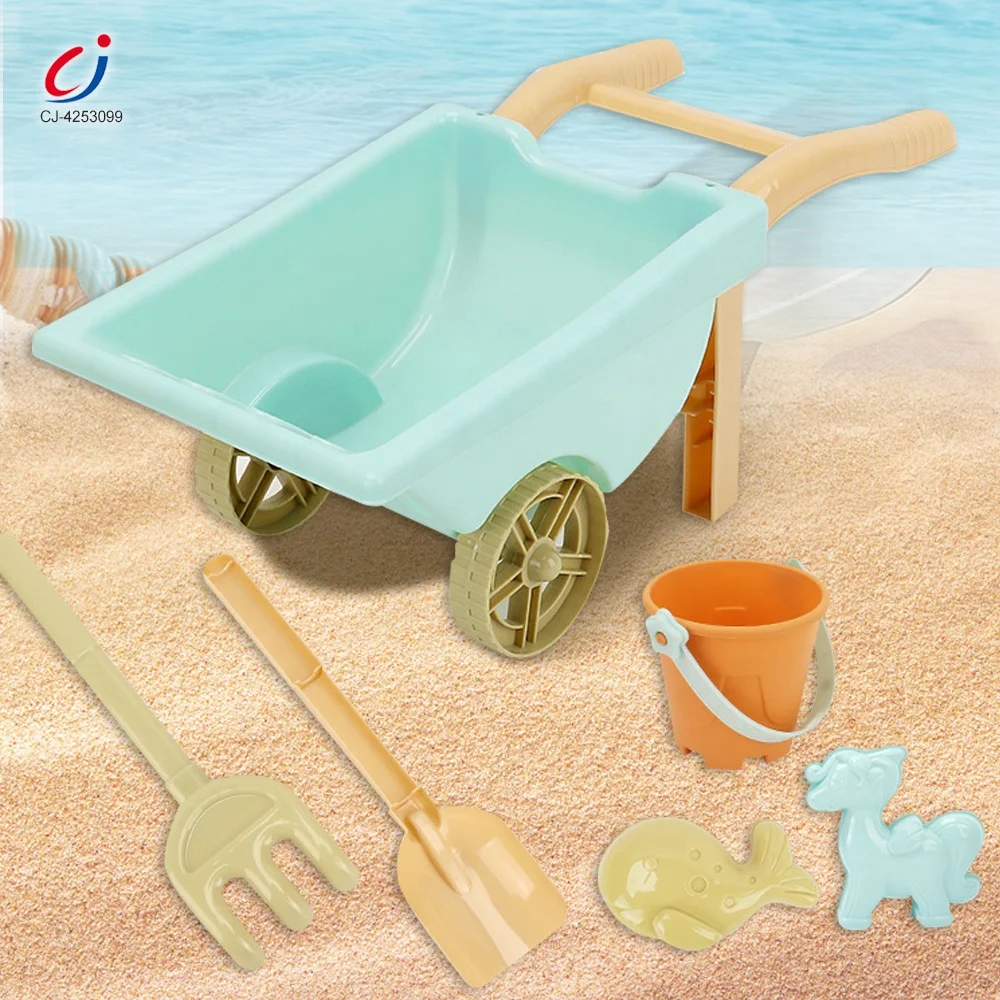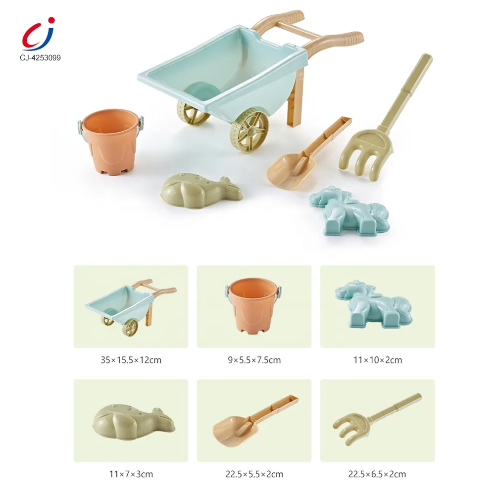 Chengji Toy Wheelbarrow Set Wholesale Children's Baby Play Sand Tools Trolley 6pcs Shovel Plastic Beach Toys with Cart