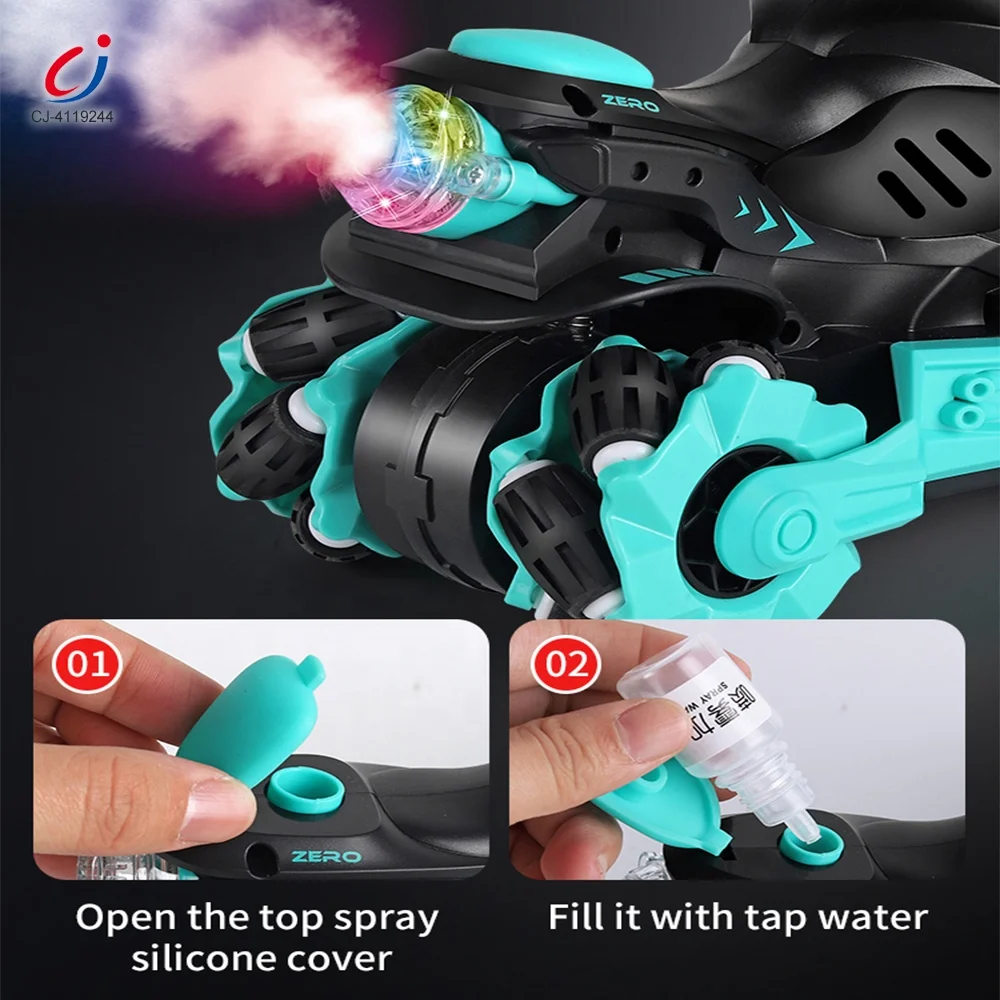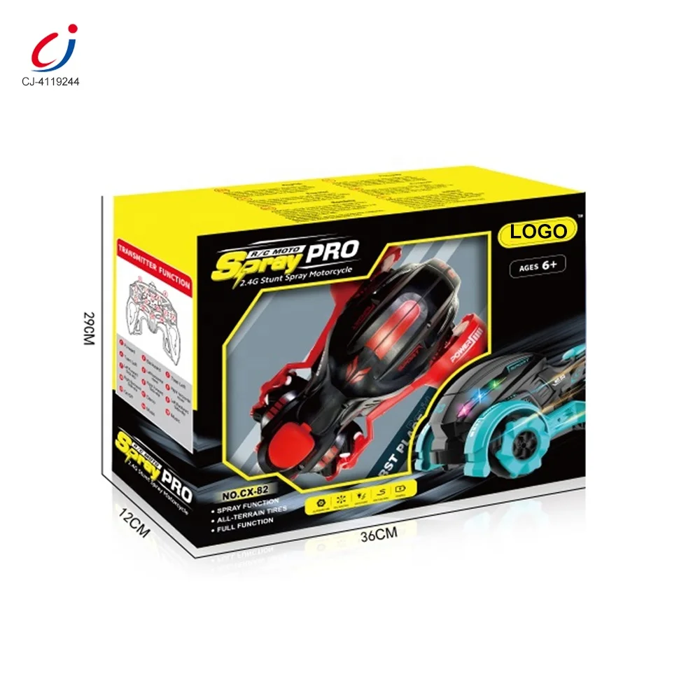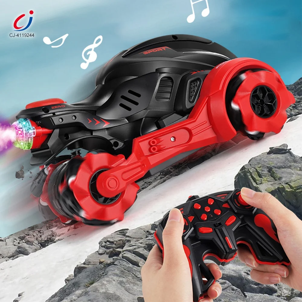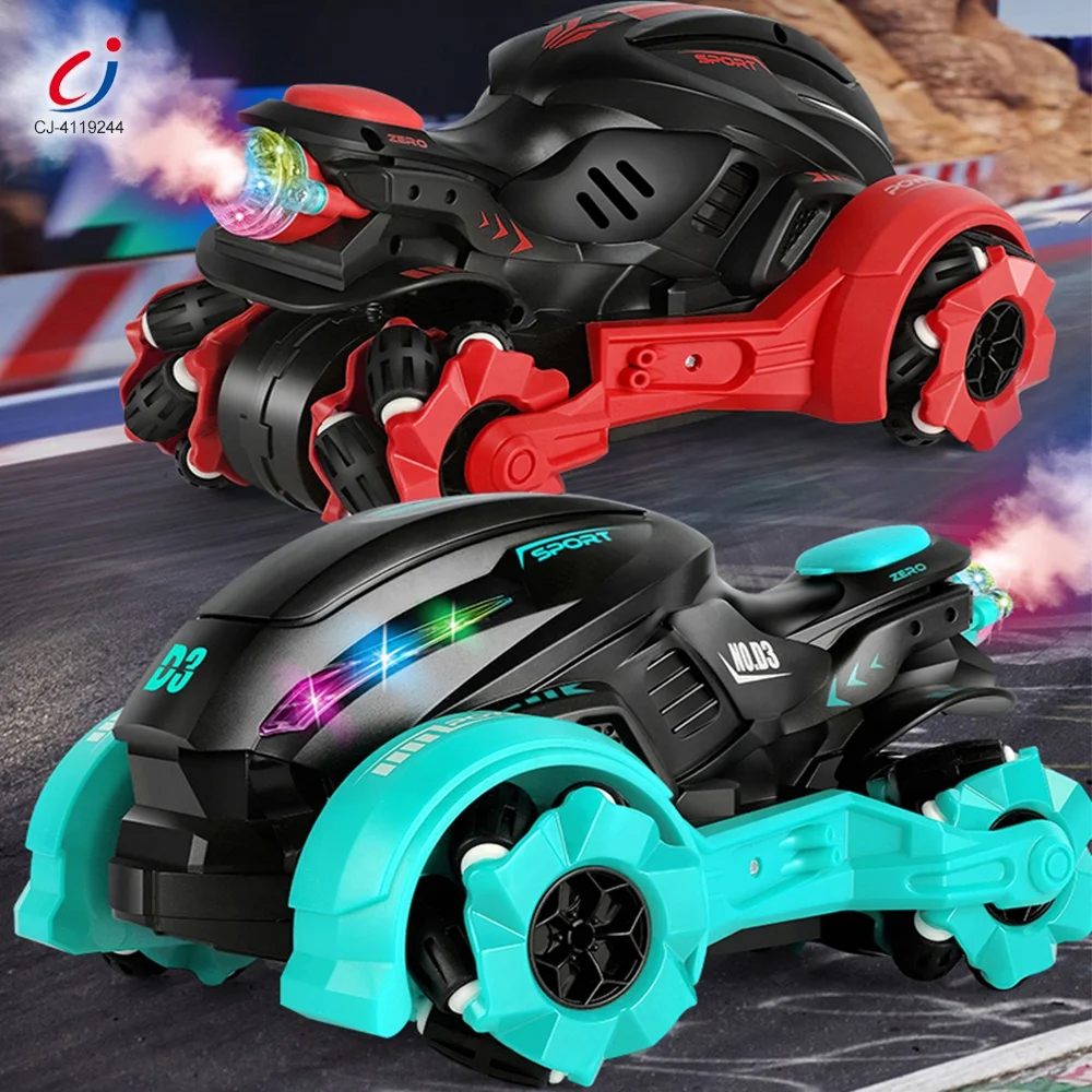 Chengji Rc Stunt Drift Motorcycle Toy 2.4g Spray 360 Degree Spinning Action Motorbike Remote Control Motorcycle for Kids