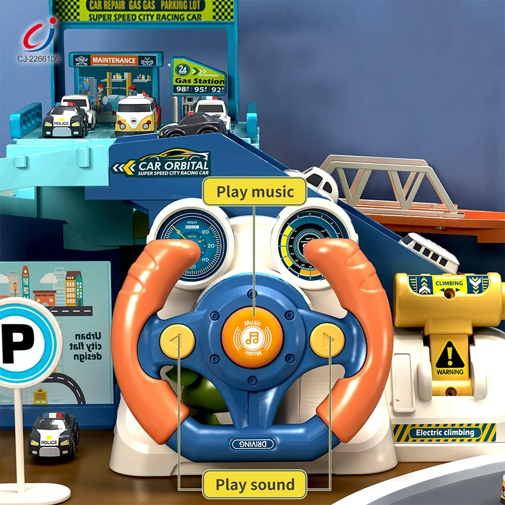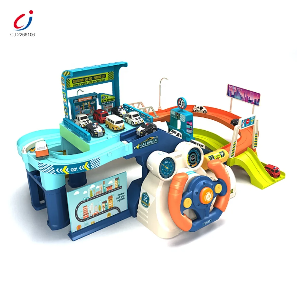 DIY Assemble Slot Urban Rail Transit Toy Steering Wheel Driving Simulation Track Car Garage Parking Lot Kids Toy