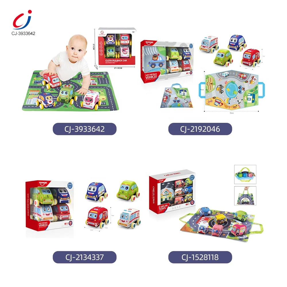 Chengji Early Educational Cartoon Cloth Pullback Car Baby Crawling Carpet Soft Toy Set Game Mat for Baby