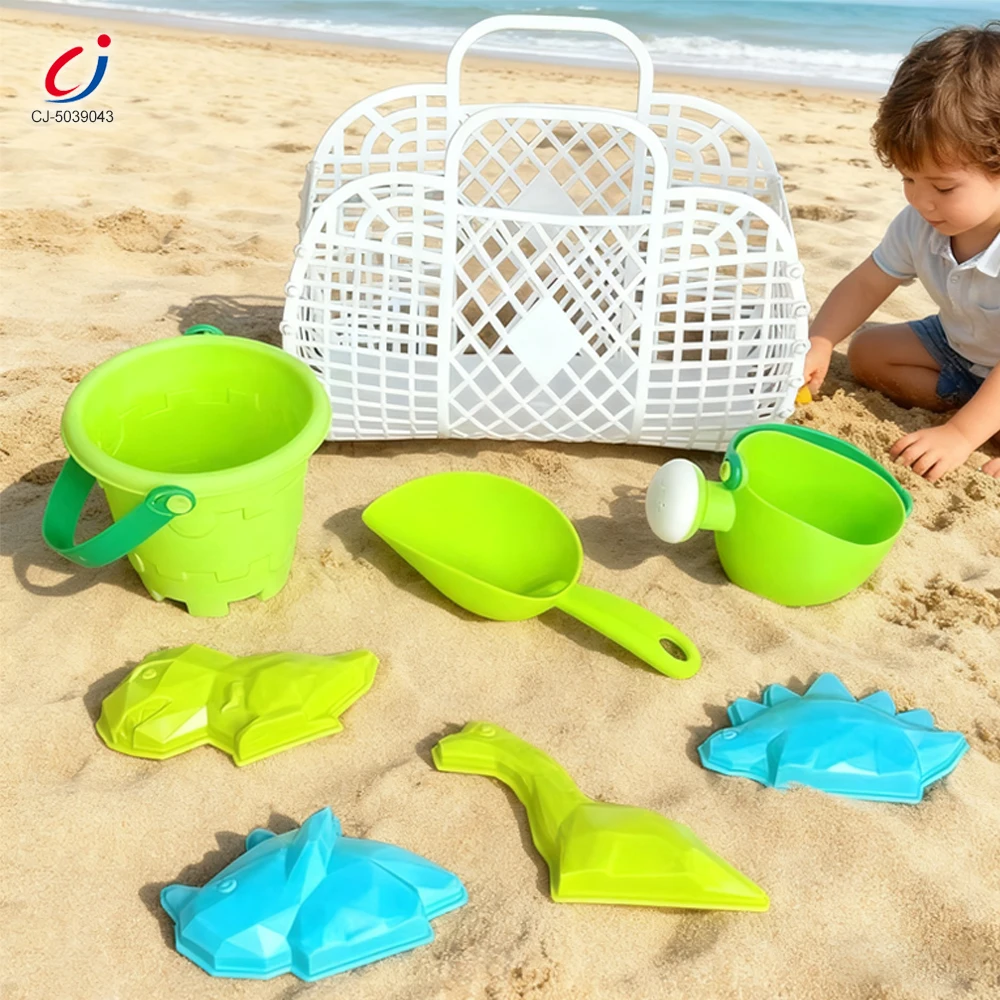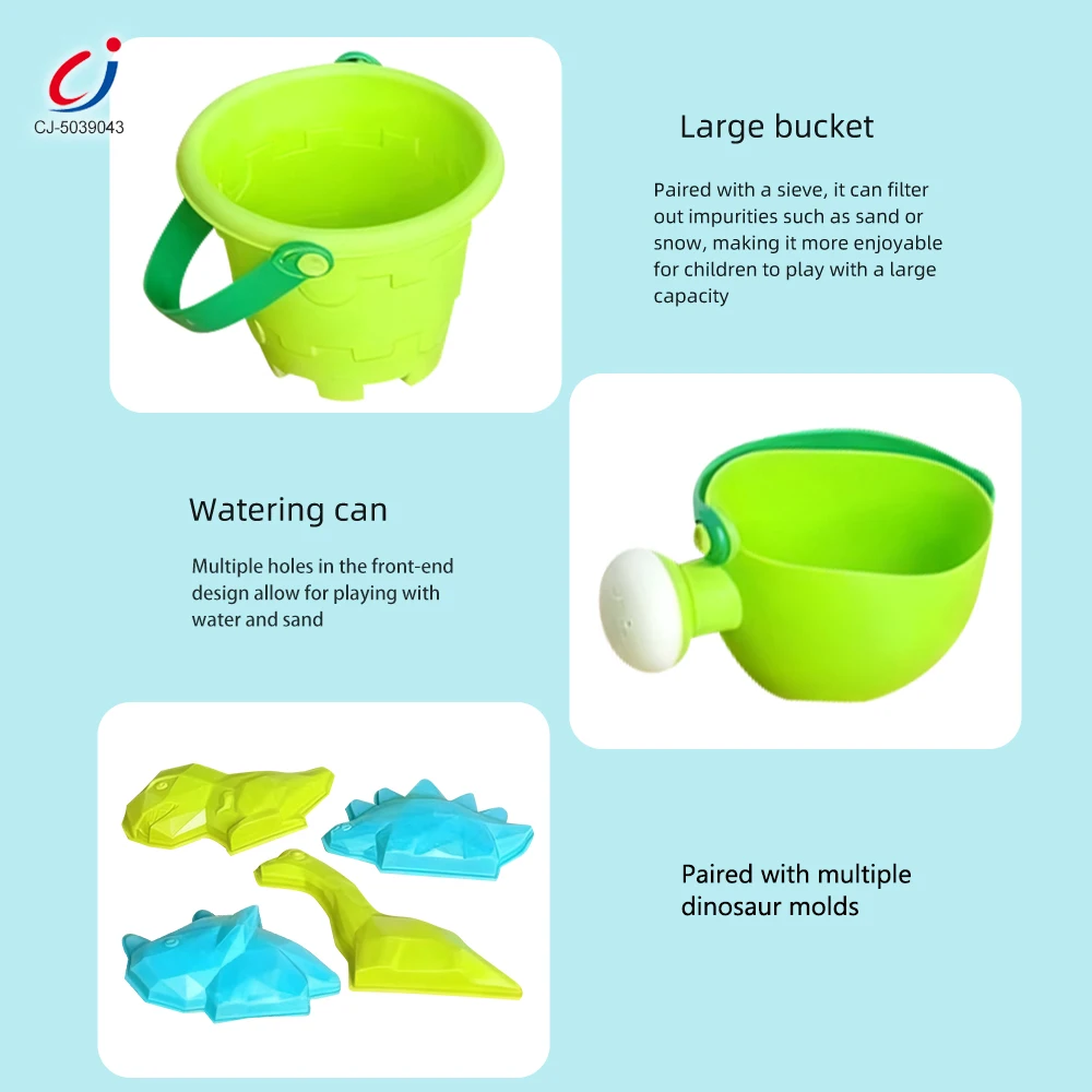 Chengji Kids Beach Toys Shovel Rake Handbasket Dinosaur 7 Pieces for Play Colorful Beach Toys Beach Sand Shovel Bucket Set