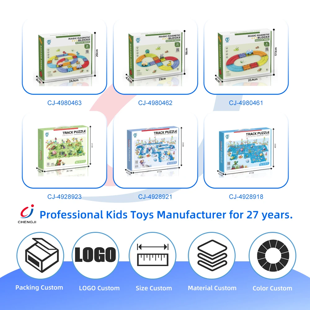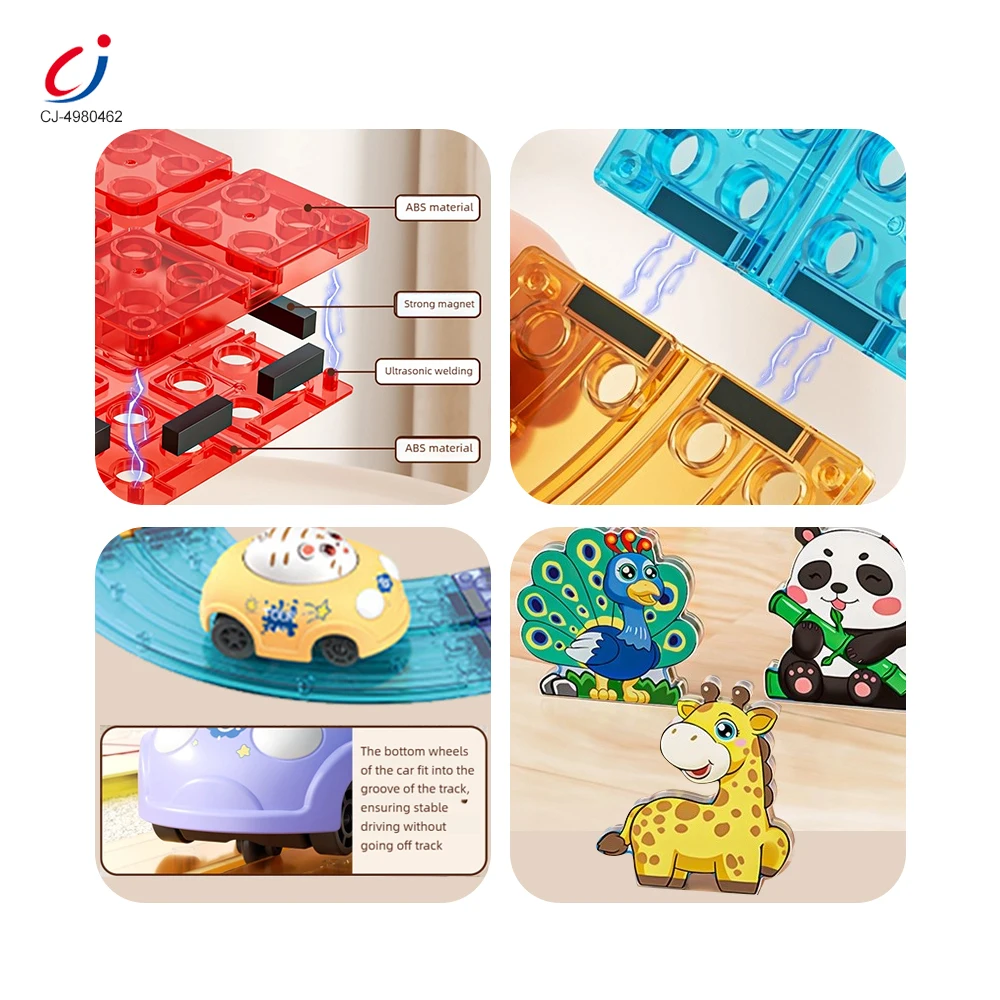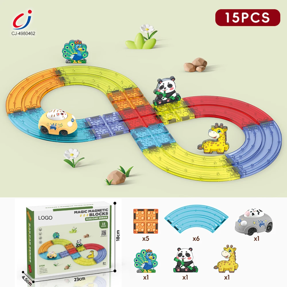 Chengji Magnetic Building Blocks Diy Construction Toy Set Cartoon Animal Theme Electric Magnet Track Race Car Toy