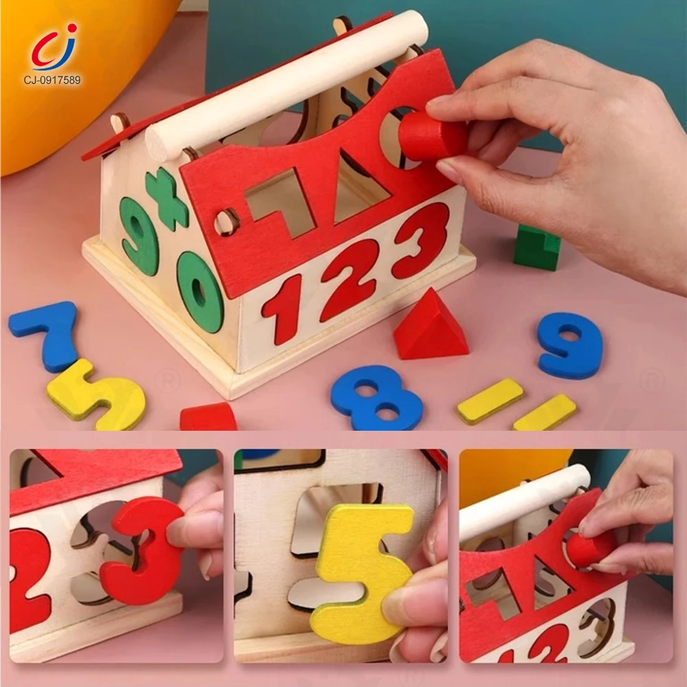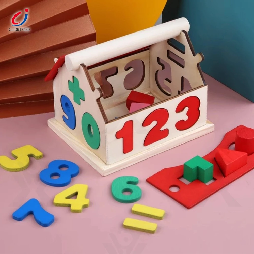 Chengji Montessori Educational Toys Arabic Alphabet Box Creative House Design Wooden Simulation Toys for Children Building Block
