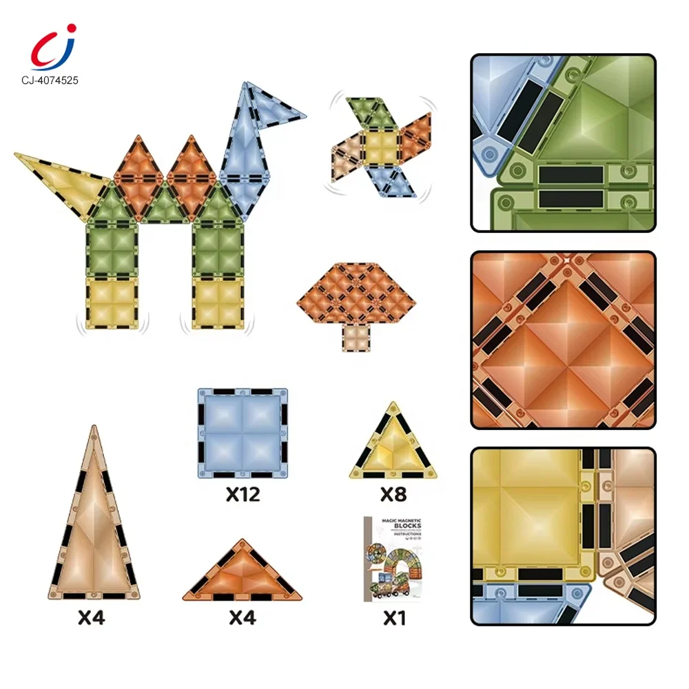 Chengji High Quality Magnetic Tiles Diy 3d Colorful Construction Gemmic Magnetic Tiles Building Blocks for Kids