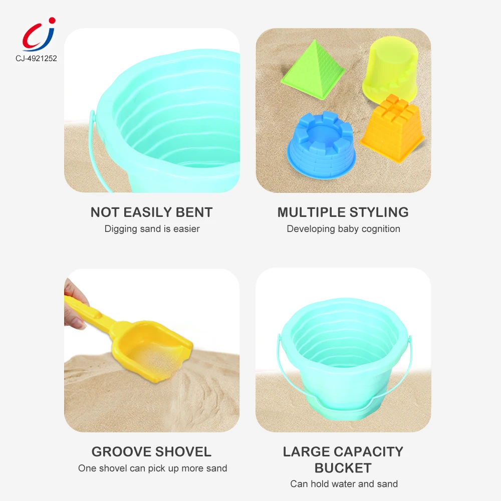 Chengji Plastic Sand Castle Molds Toy Portable Cartoon Colorful Tool Toys Set for Kids Custom-made Beach Bucket Toy Set