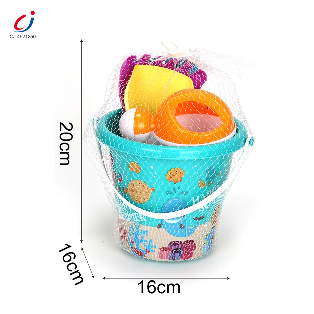 Chengji Summer Plastic Beach Toys Hot Seller Bucket Tool Bucket Spade Set 6pcs Children Beach Toys Bucket Spade