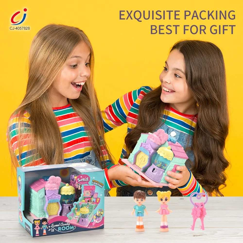 Chengji Portable Doll House Surprise Theme Toy Kids Role Playing Game 3d Folding Sweet Candy Mini Dollhouse with Music and Light