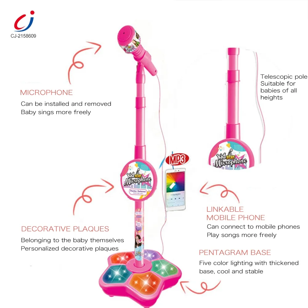 Chengji Kids Microphone With Stand Karaoke Song Music Instrument Toys Brain-Training Educational Toy Birthday Gift for Girl Boy