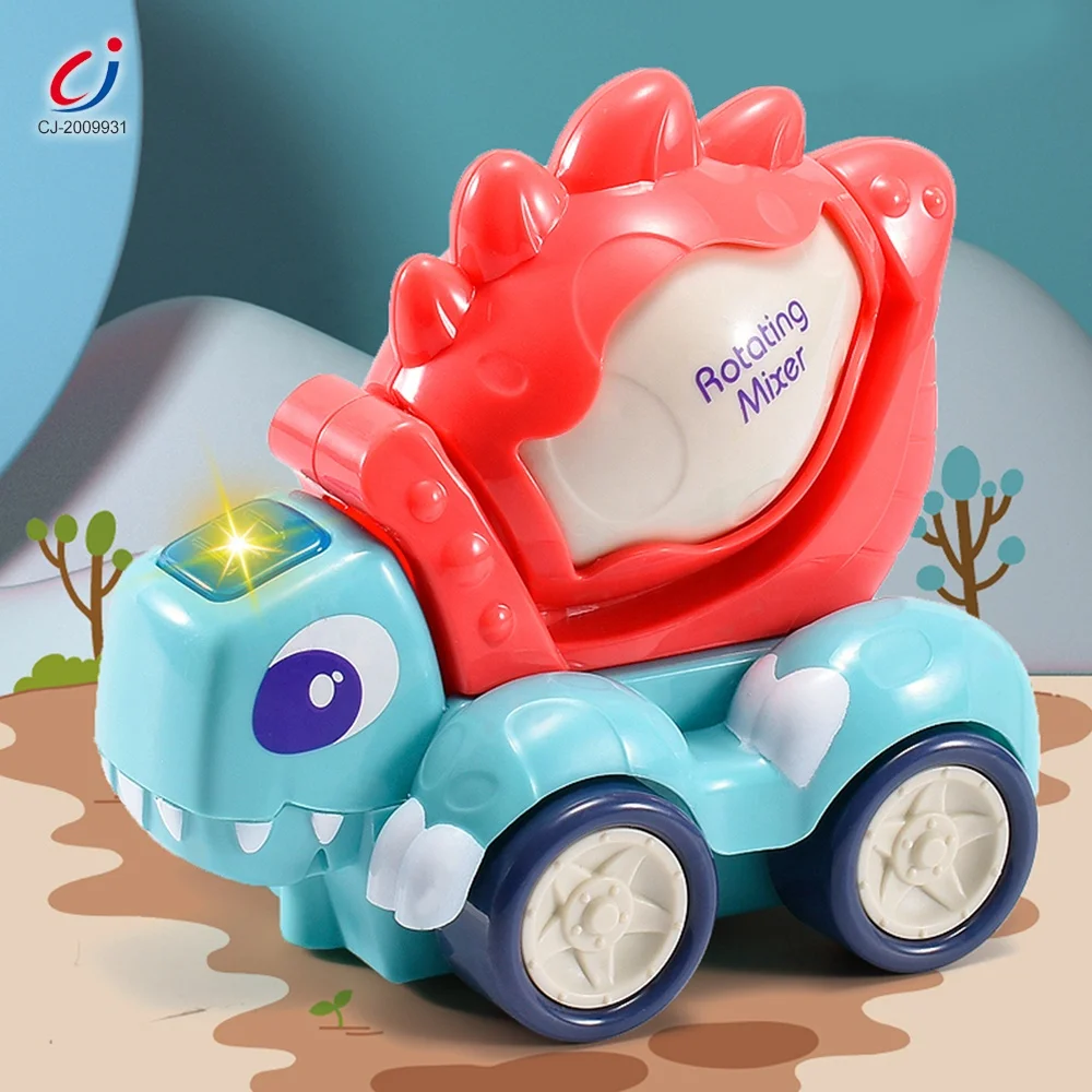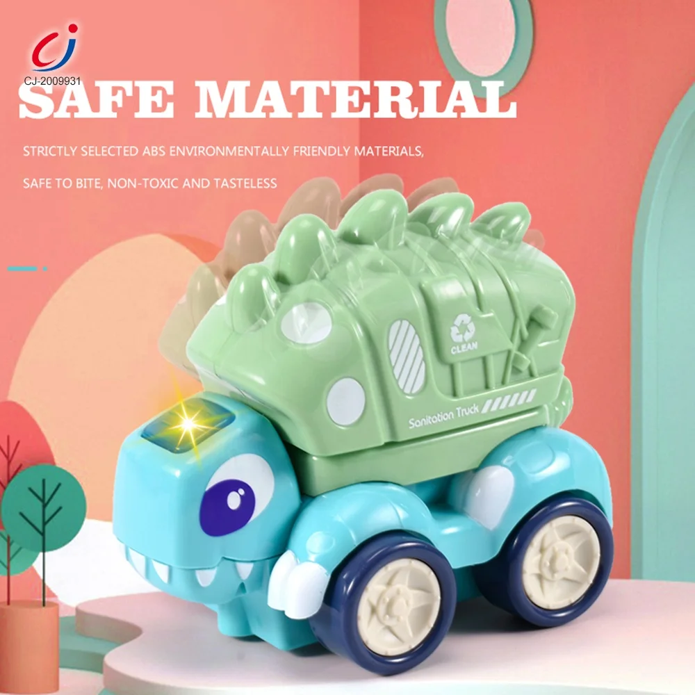 Light Music Electric Inertia Friction Cartoon Dinosaur Car Friction Toys, Dinosaur Toys Cars Engineering Vehicle for Children