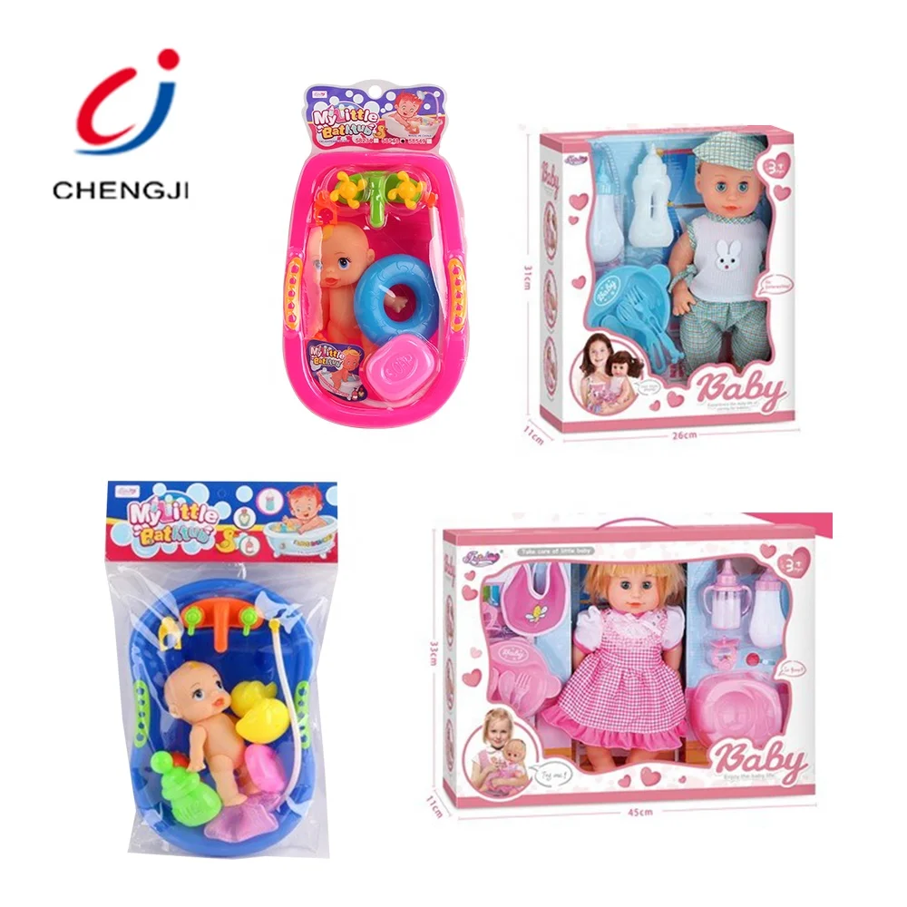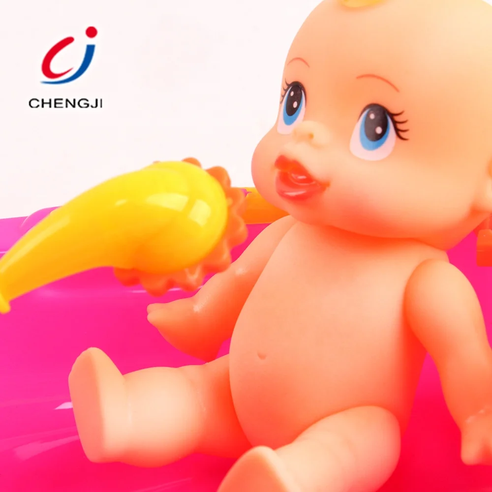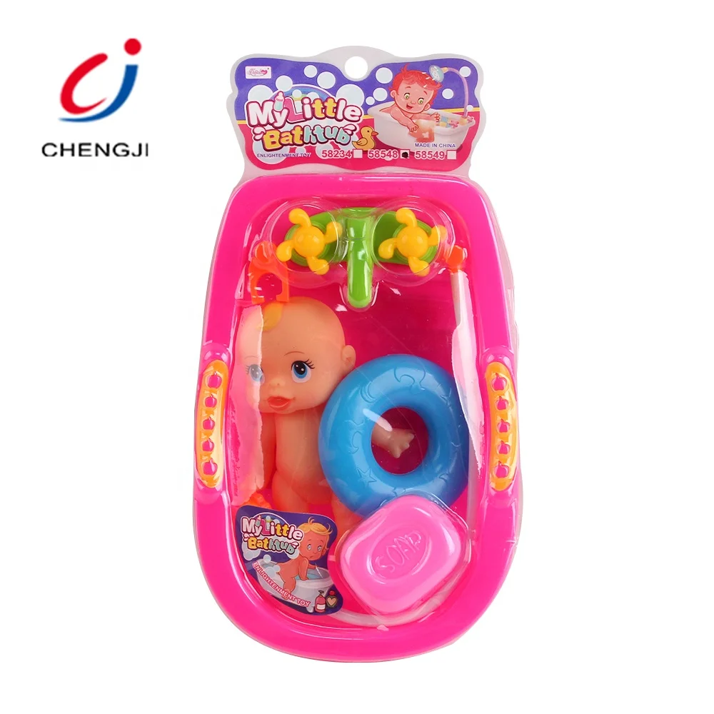Cute Plastic Early Learning Toys Fashion Reborn Wash Baby Doll Bath Tub with Swim Ring