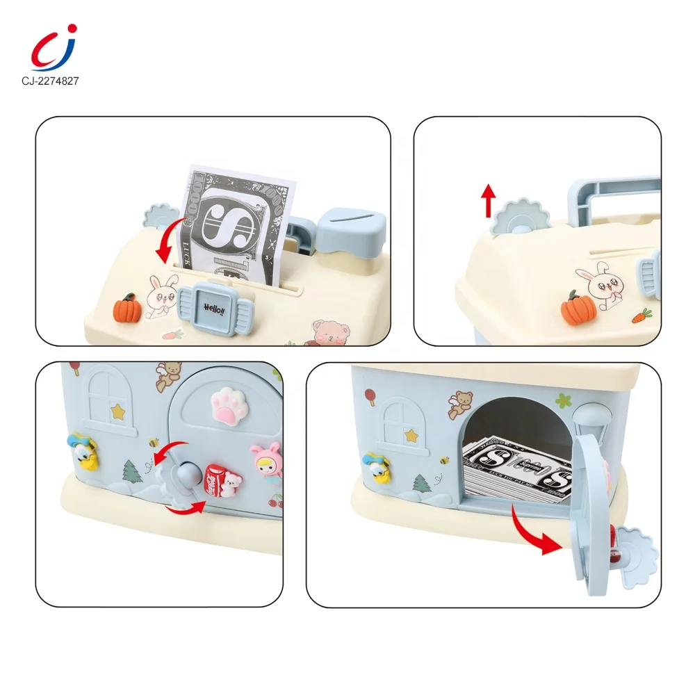 Kids Coin Bank Cute House Money Box Diy Sticker Plastic Money Saving Box Piggy Banks with Keys