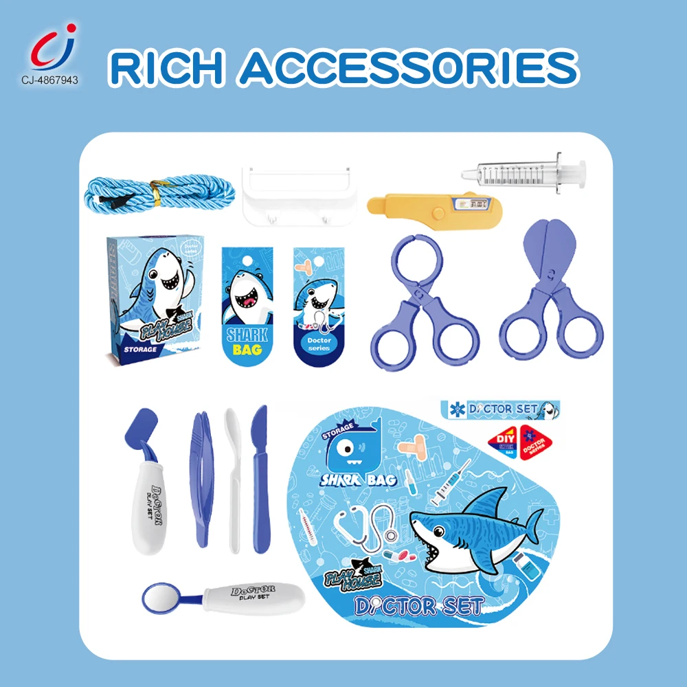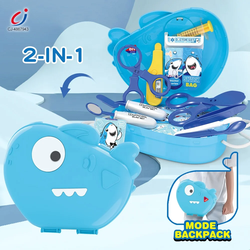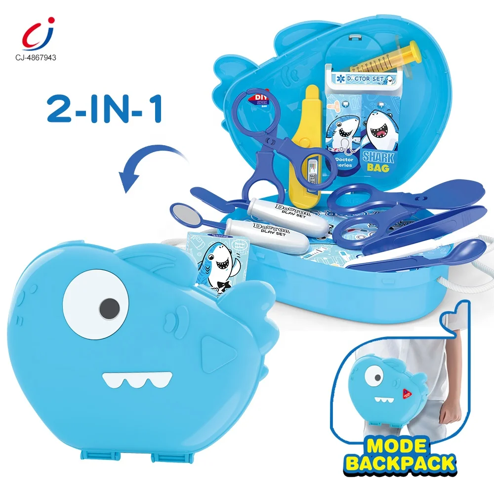 Chengji Kids Doctor Bag Toy Pretend Play 2 in 1 Cartoon Shark Backpack Children Medical Play Toys