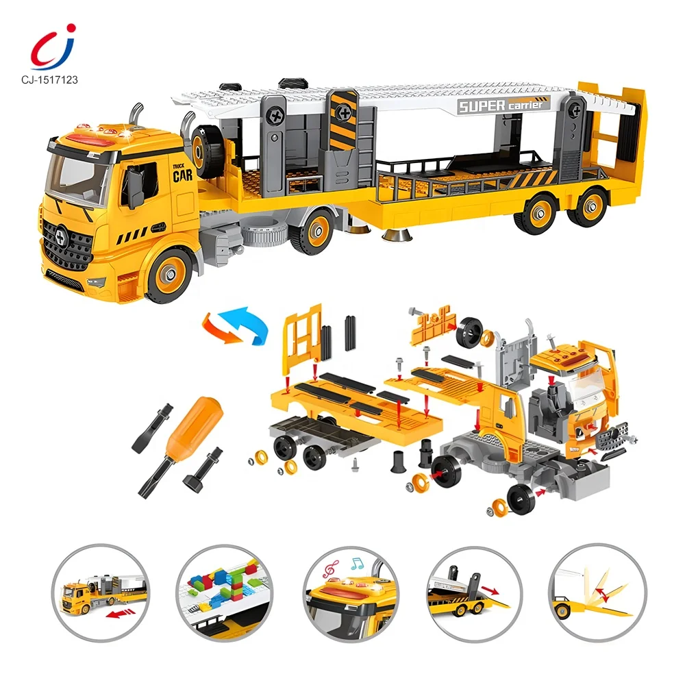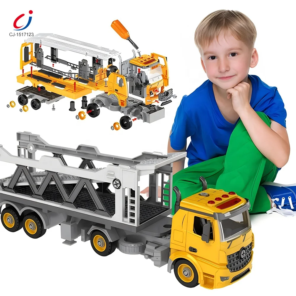 98 PCS DIY Assembly Blocks Friction Toy Vehicles Inertia Power Construction Vehicles Carrier Toy Transport Truck