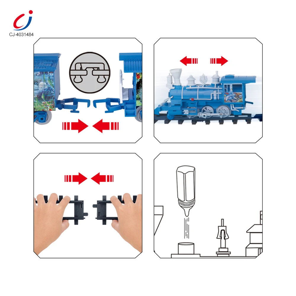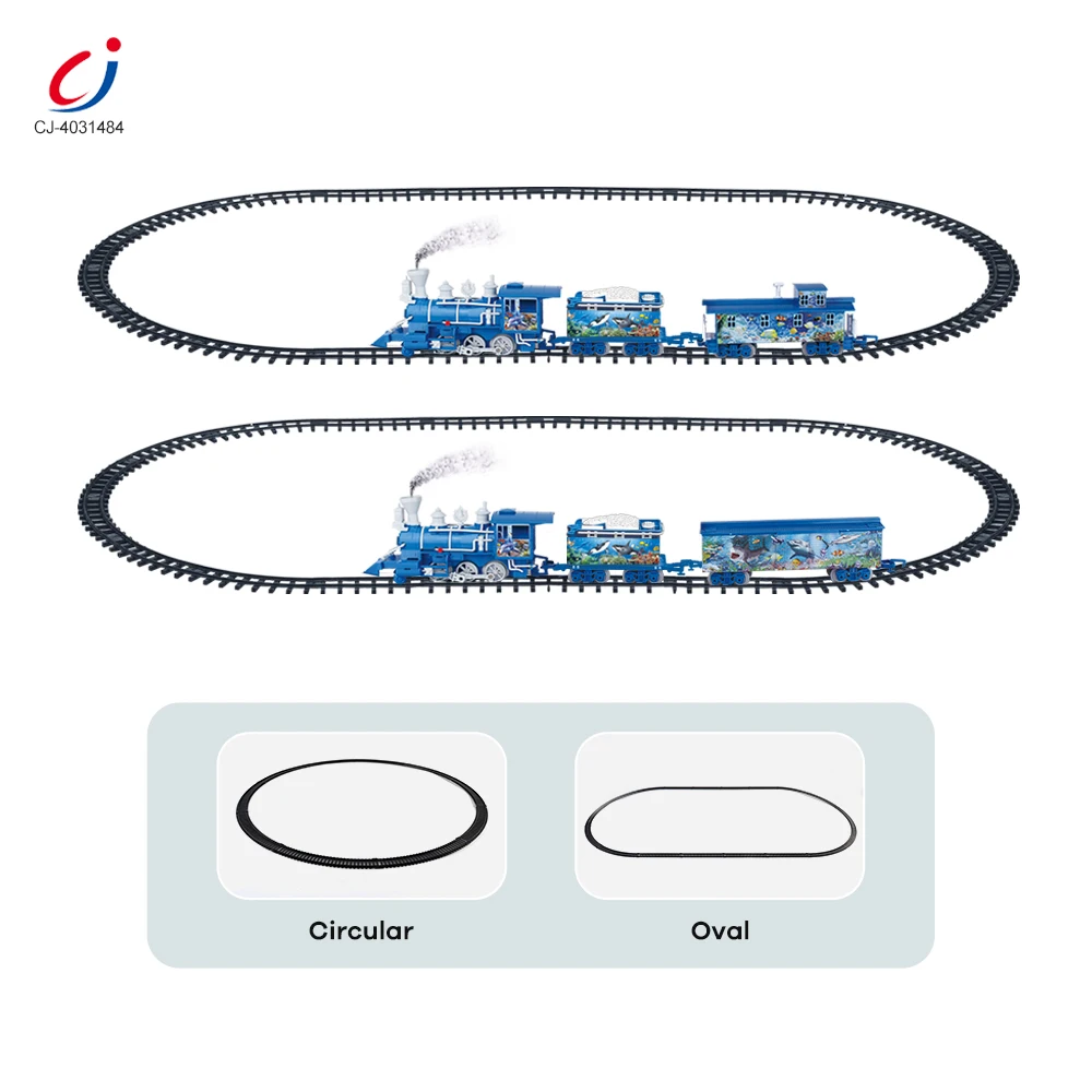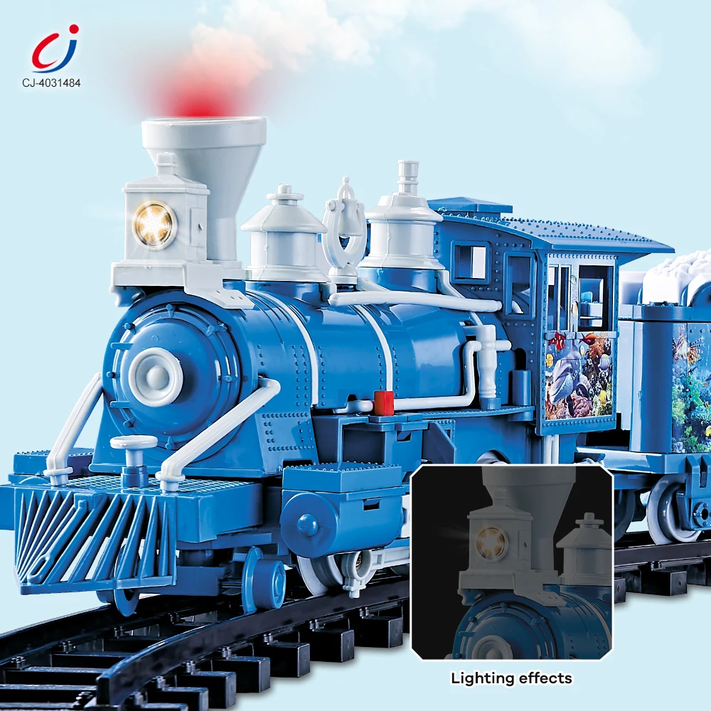 Chengji Steam Electric Music Light Track Smoke Railway Battery Ocean Sightseeing Plastic Rail Train Set Toys for Boys Train