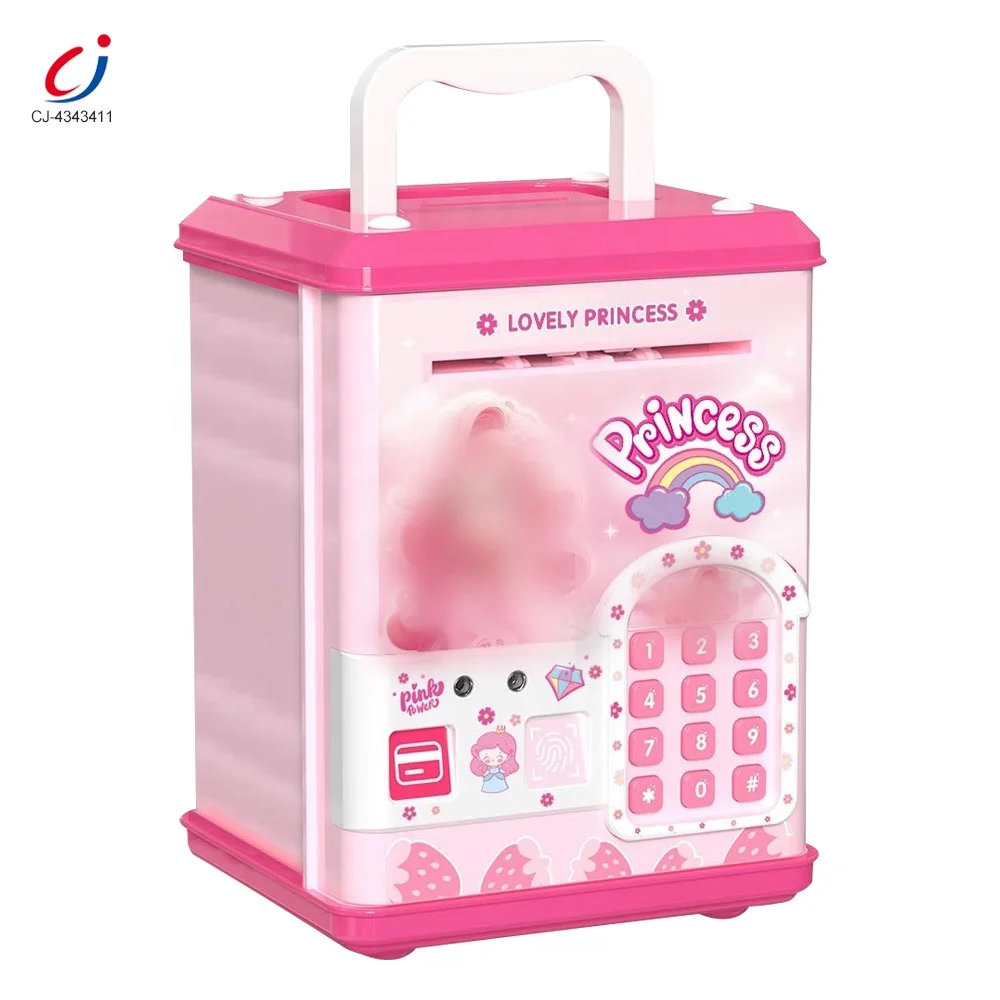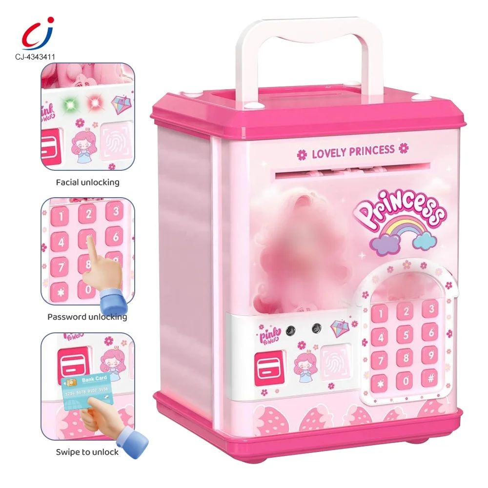 Chengji pink Piggy Banks Kids Electronic Multifunctional Simulated Swiping Card Fingerprint Password Unlock Smart Atm Piggy Bank
