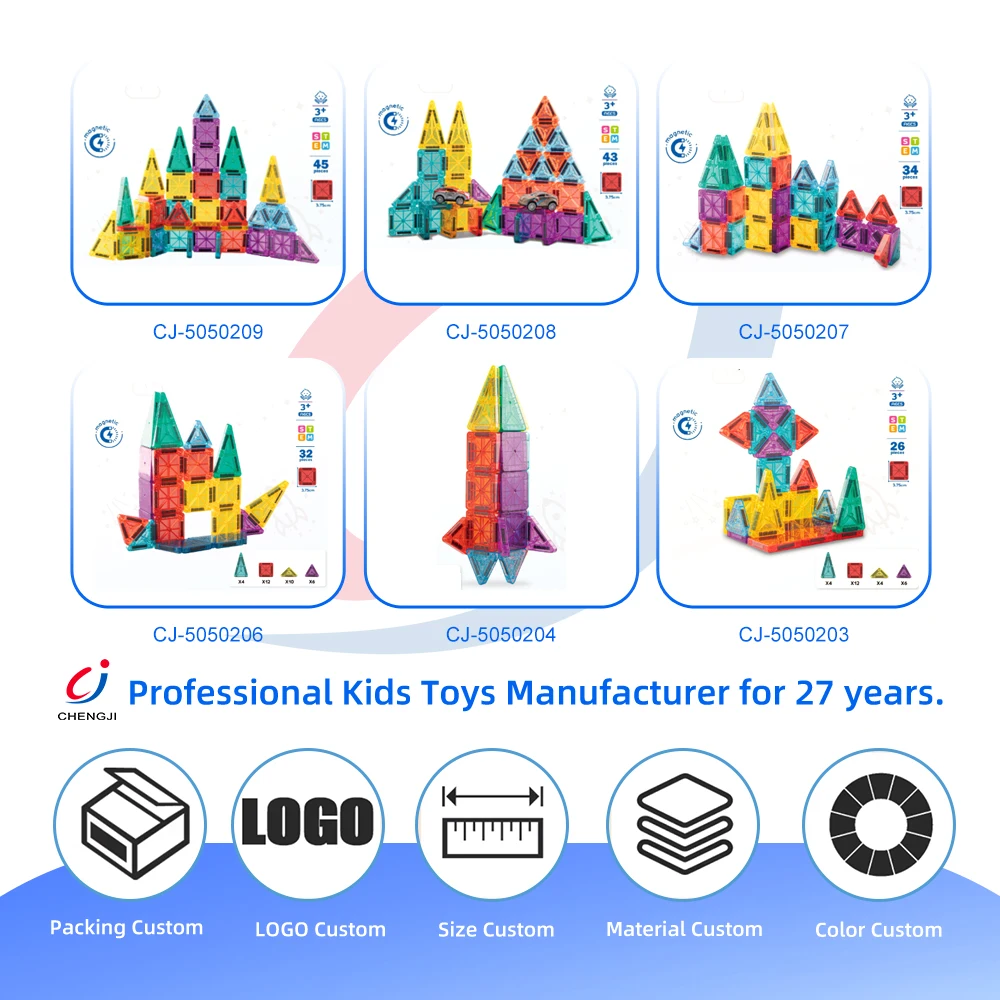 Chengji Magnet Building Tiles clear Magnetic 3d Blocks Customizable Educational Building Blocks Toy Magnetic Tiles for Children