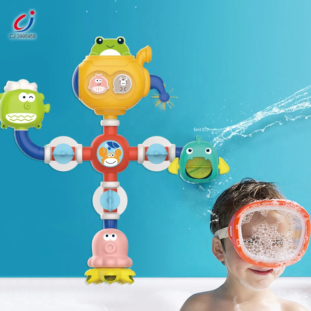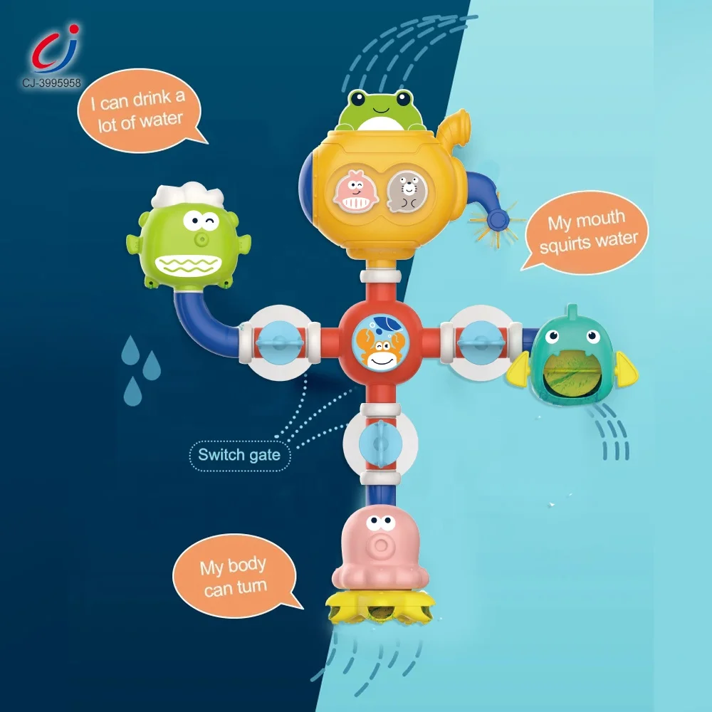 Chengji Baby Bath Tub Toys Spray Water Toy Summer Cartoon Ocean Shape Plastic Splicing Water Pipes Bath Toy