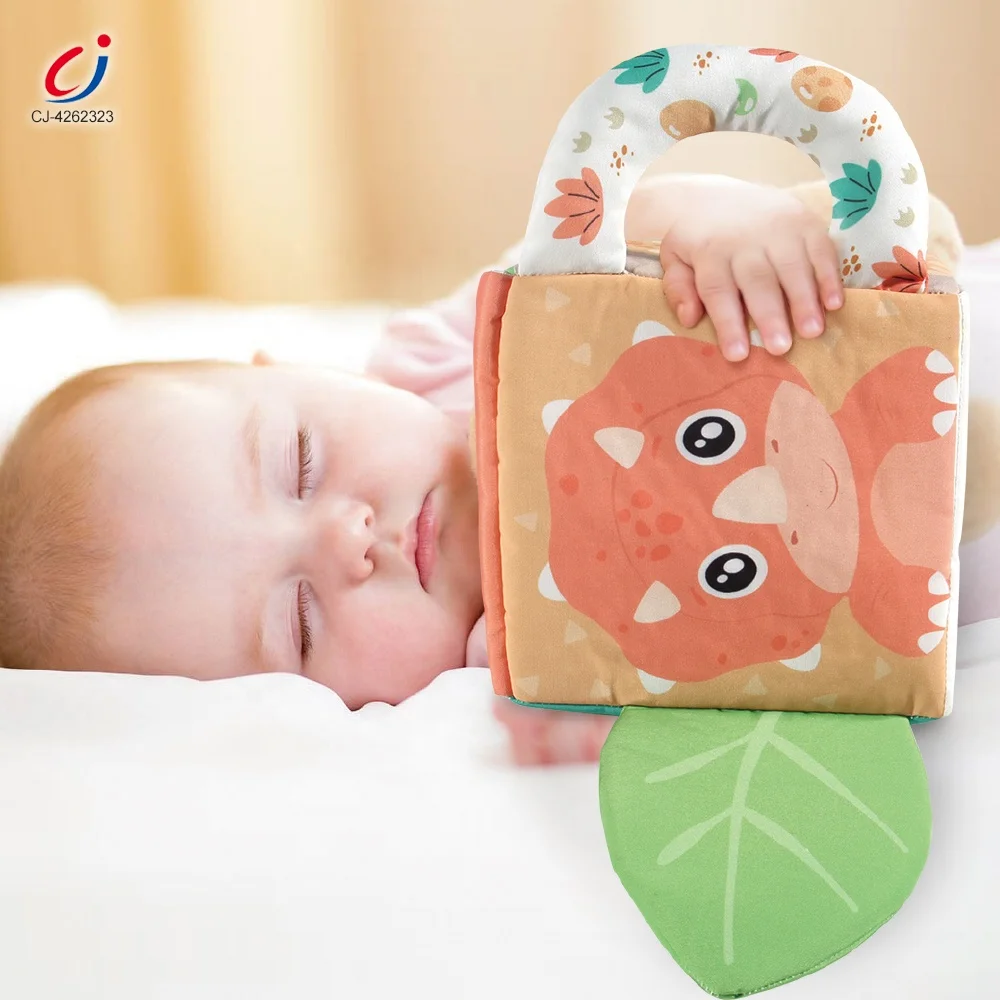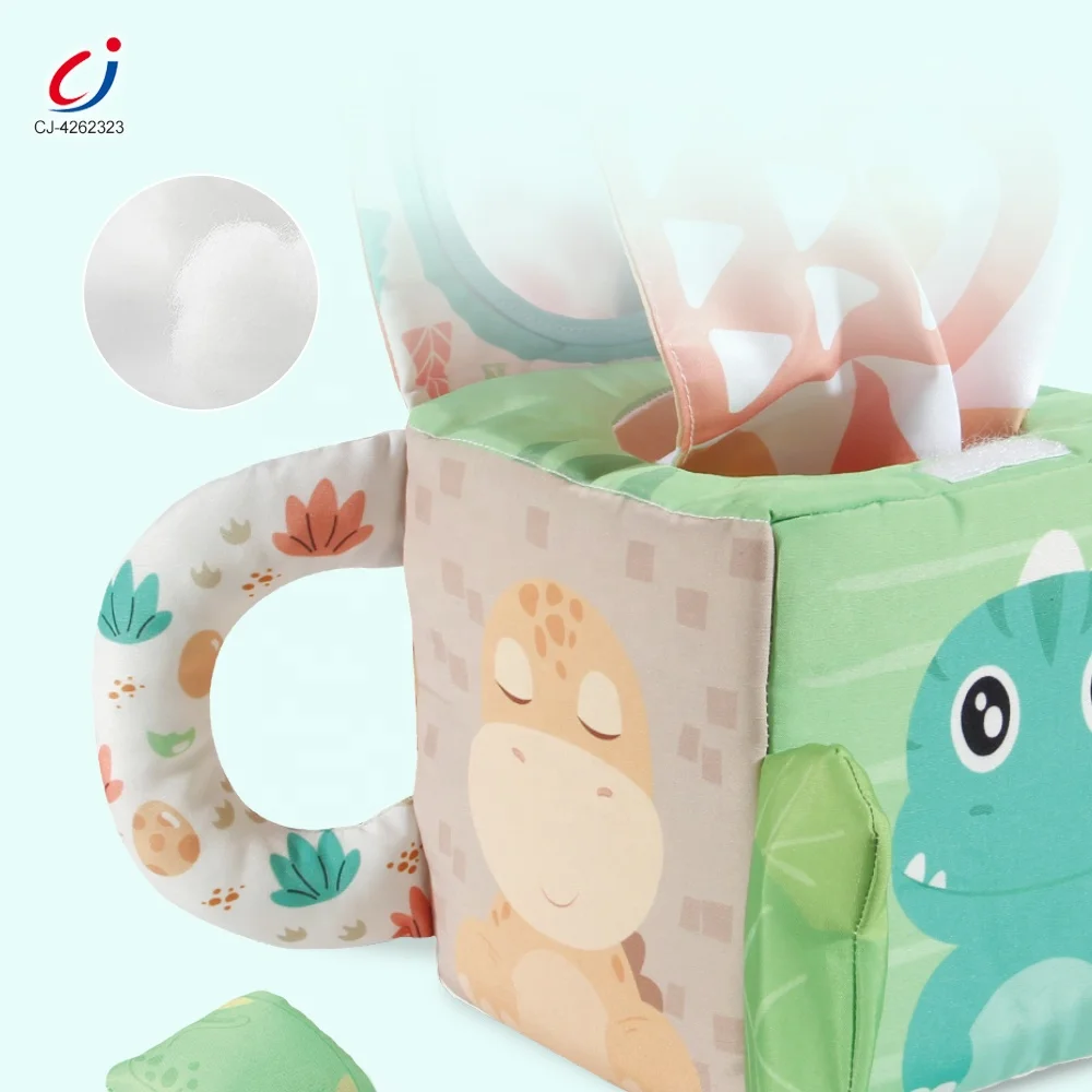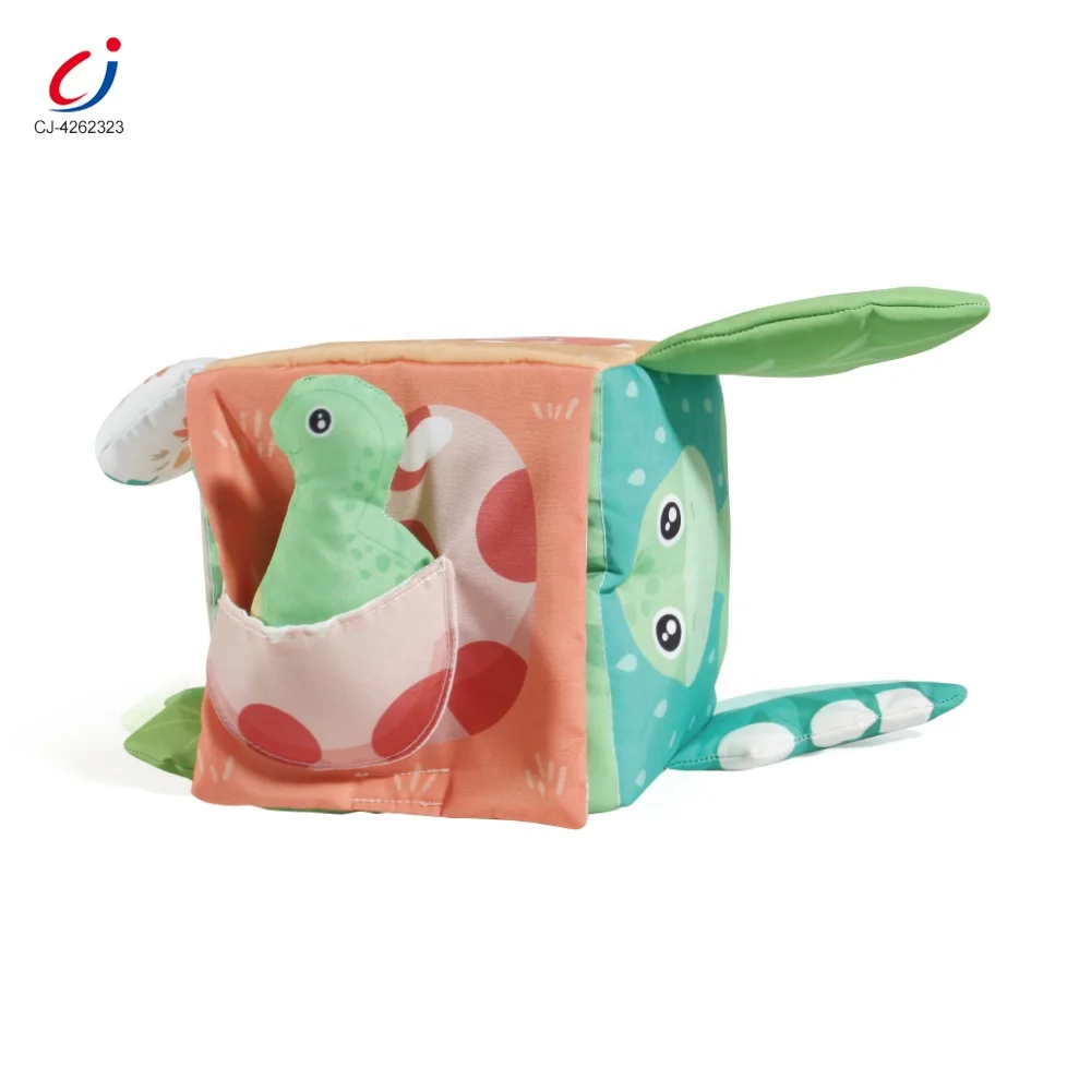 Chengji Soft Cube Toys Baby Busy Educational Sensory Montessori Dinosaur Plush Activity Cube Toy with Mirror