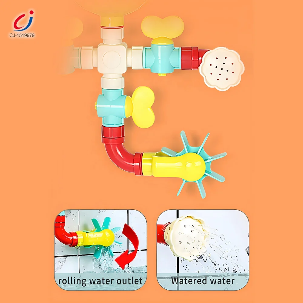 Chengji Bathtub Toy Set Bathroom Funny Spray Water Game Toddler Diy Plastic Splicing Water Pipes Bath Toy