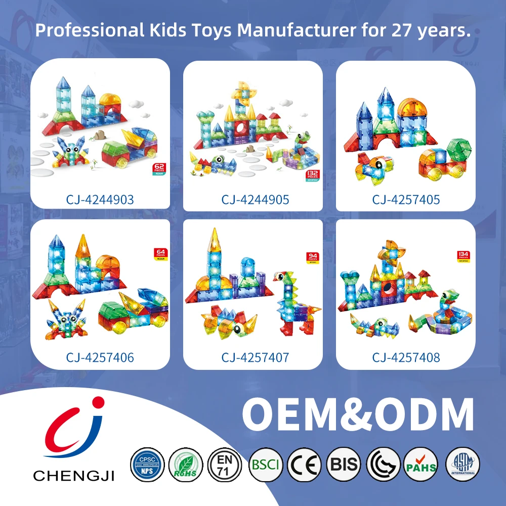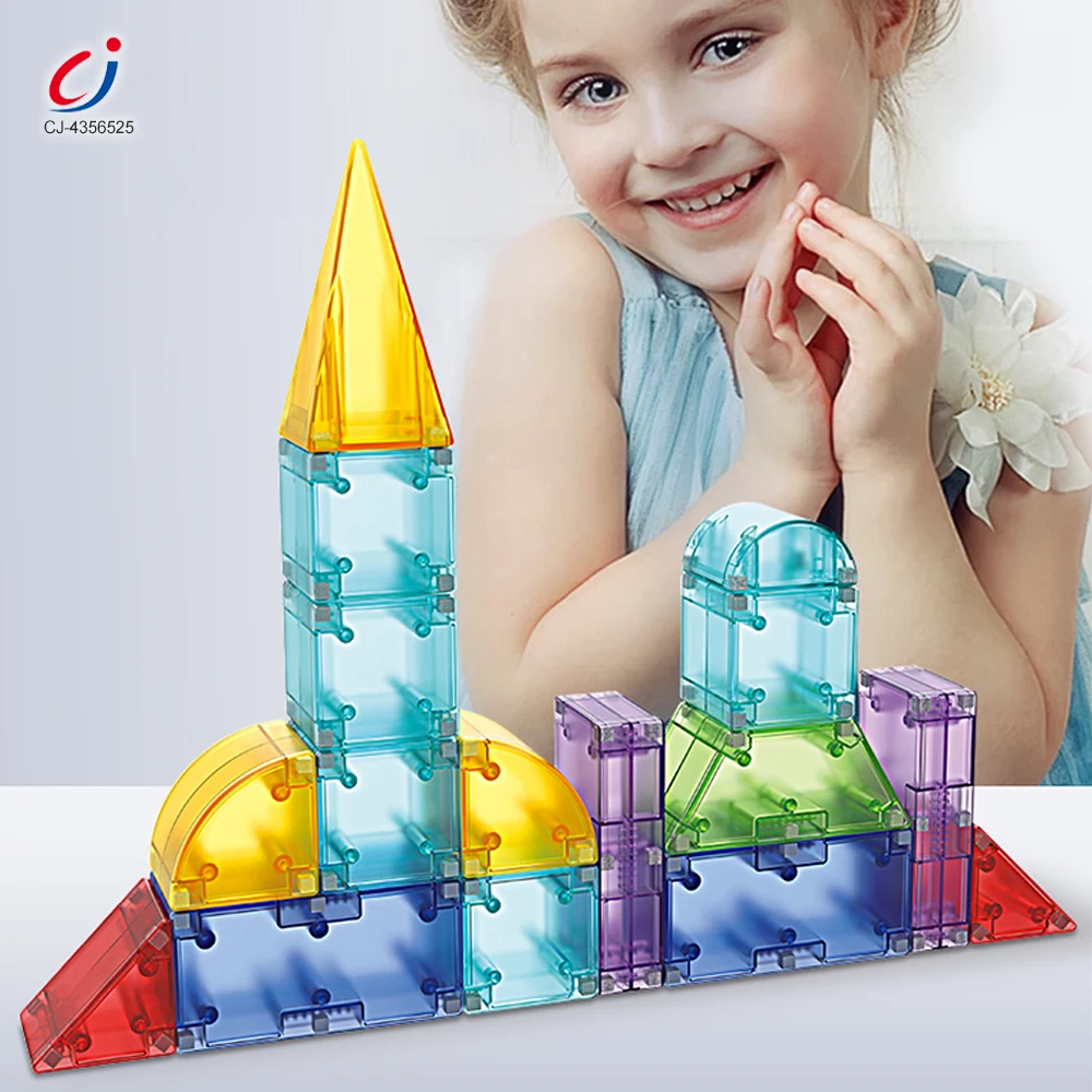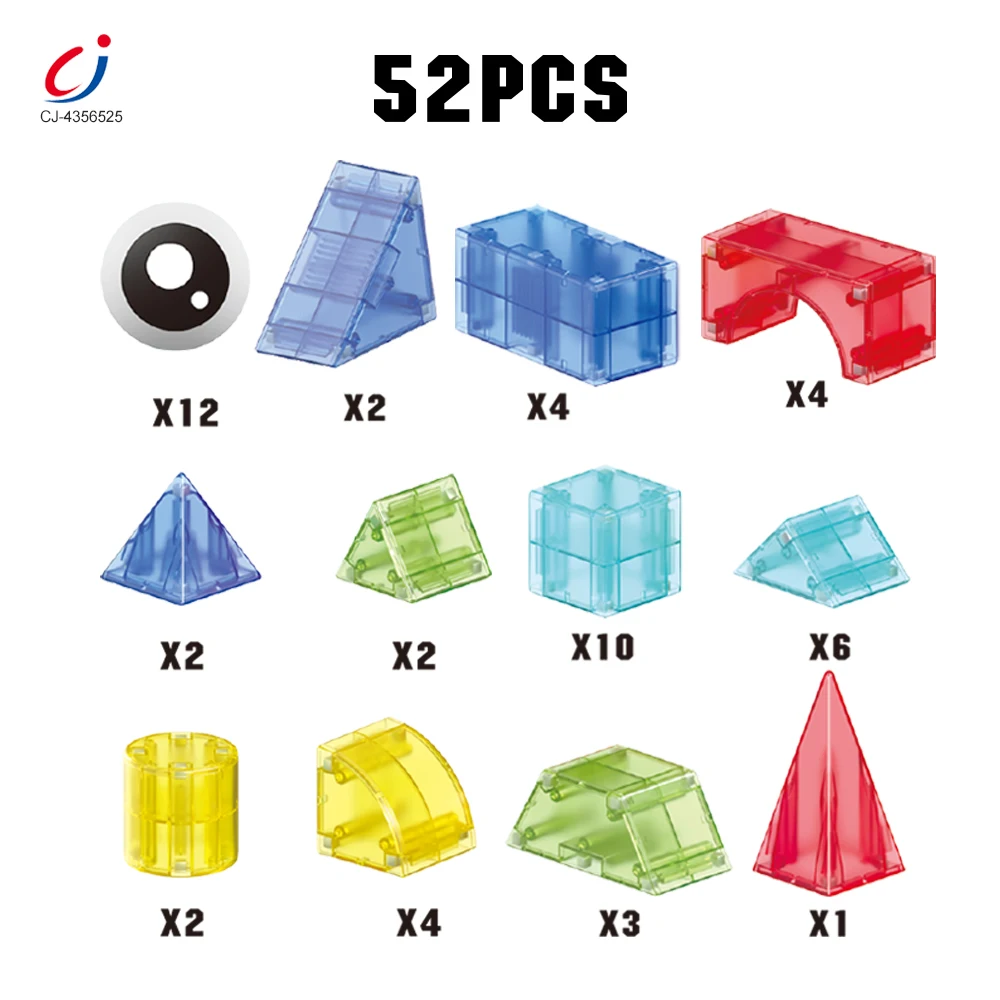 Chengji Wholesale Kid Toy Diy Magnetic Building Blocks Set Kids Educational Assembly Transparent Geometric Magnetic Blocks 52