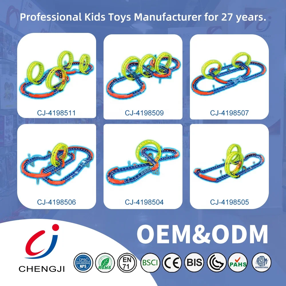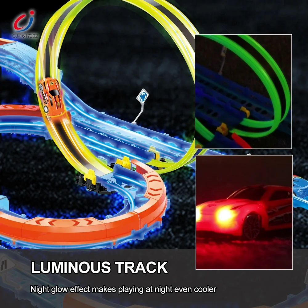 Chengji Luminous Tracks Toys Kids Diy Assembly Rail High Speed Remote Control Vehicle Play Set Electric Race Track with Rc Cars