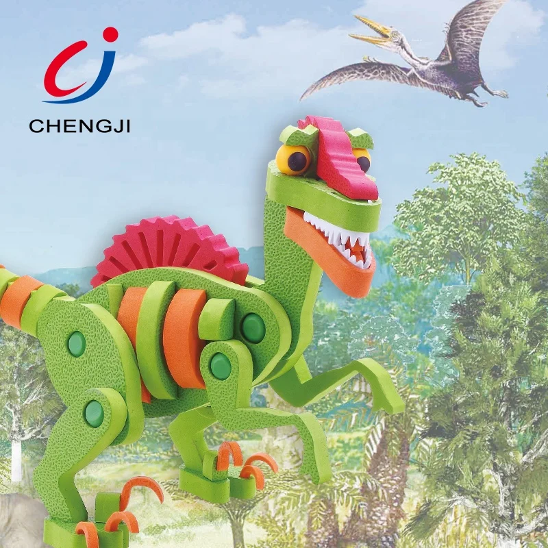 High Quality Cheap Intelligence Plastic Animal Building Dinosaur 3d Foam Jigsaw Puzzle Eva Small Kids Diy Block Toy