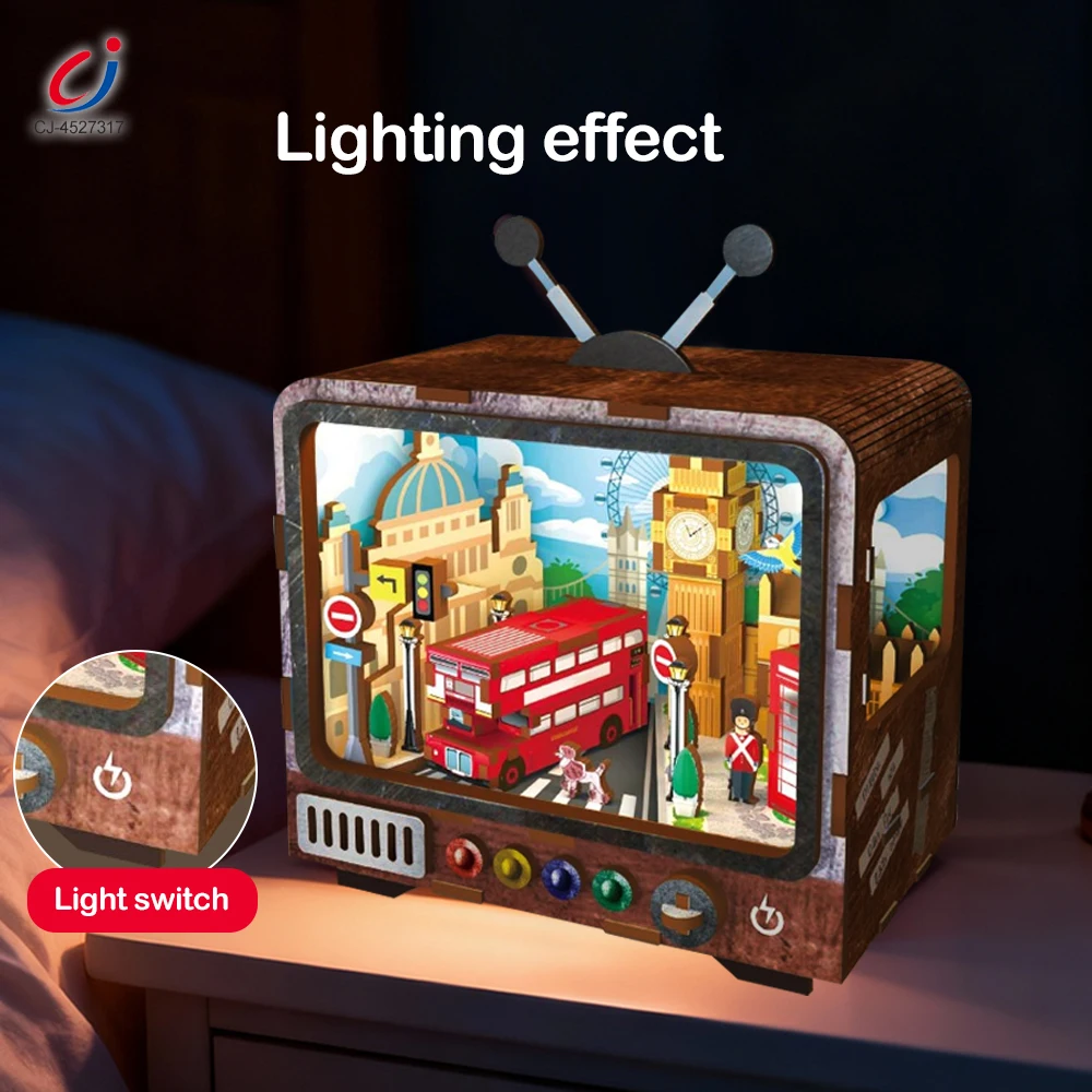 Chengji Wooden Construction Puzzle Toddler Simulated Scenario Lighting Educational Toys for Children Wooden Jigsaw Puzzle