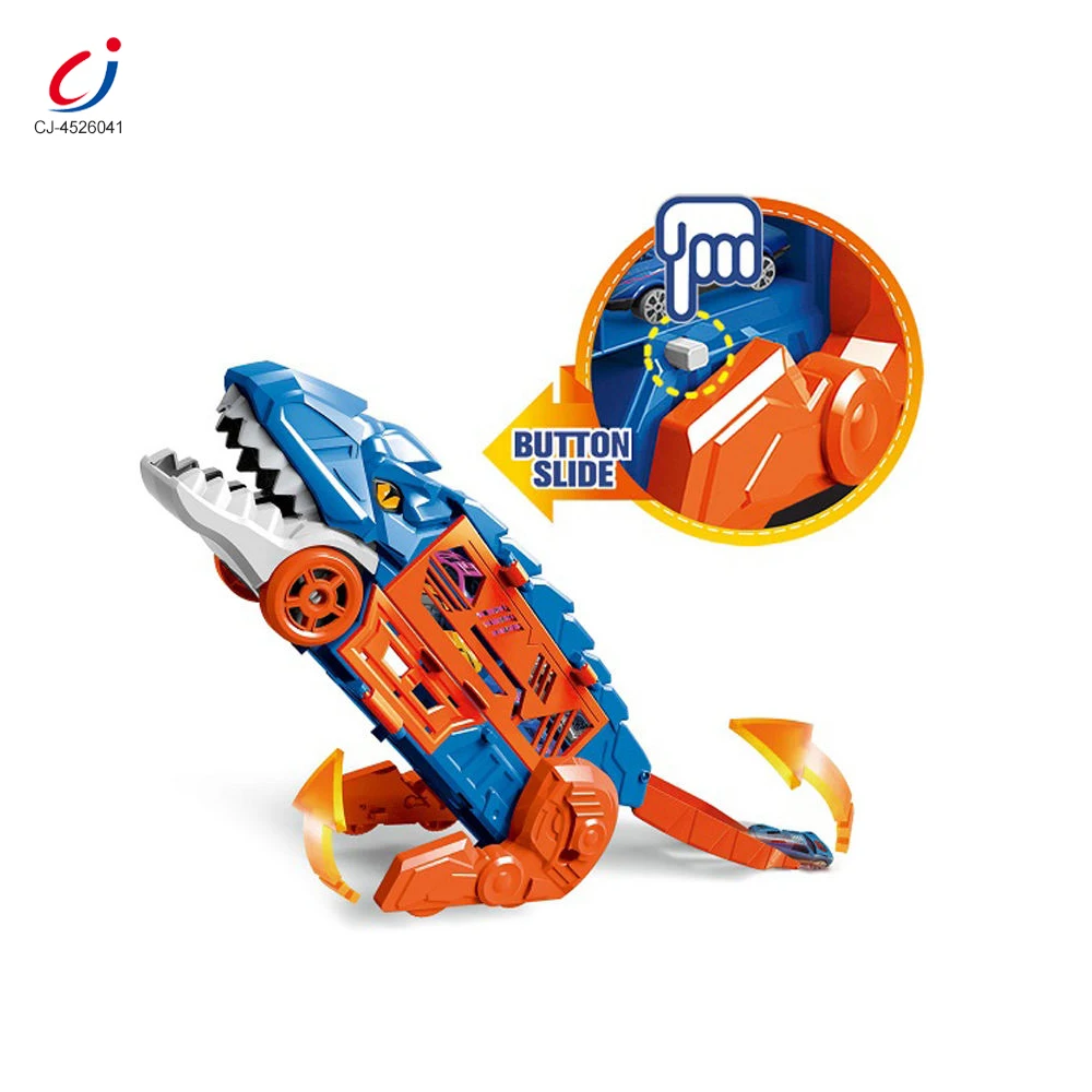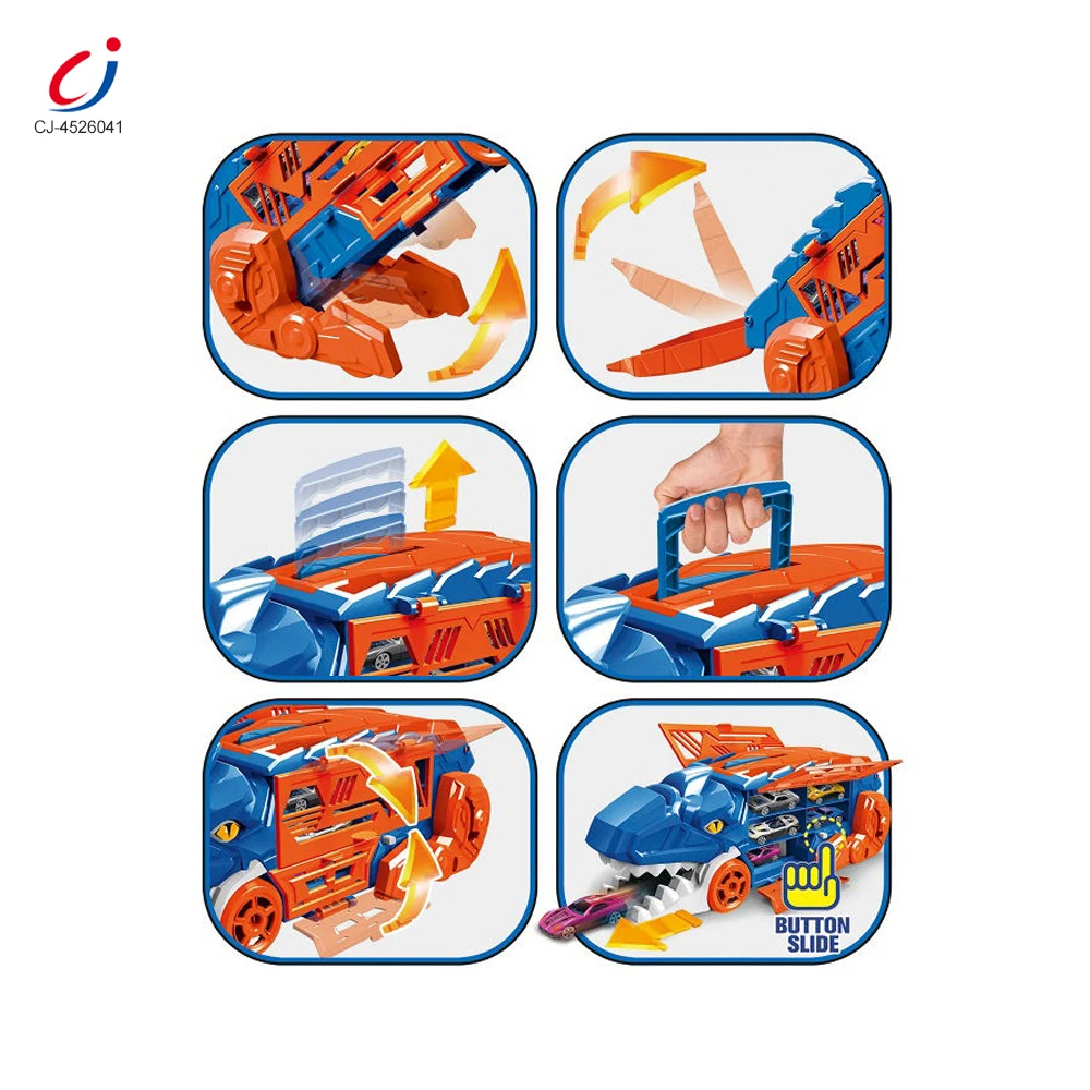 Chengji Dinosaur Toy Car Transport 2 in 1Storage Truck Diecast 6pcs Alloy Ejection Vehicle Storage Trailer Series Dinosaur Truck