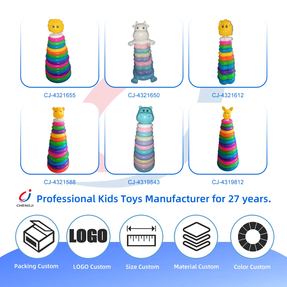 Chengji Ring Stack Tumbler Toy Toss Colorful Little Dinosaur Seven Color Rainbow Tower DIY Jumbo Ring Stacking Toy