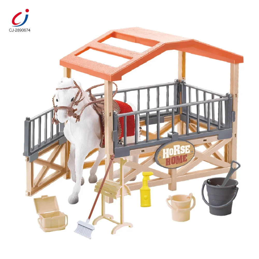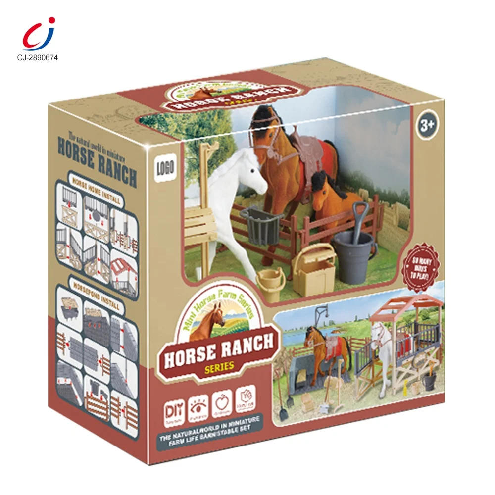 Chengji Animal Farm Toys House Horse Stable Simulation Flocking Scene Stable Realistic Horses Kids Horse Farm Toy Set for Kids