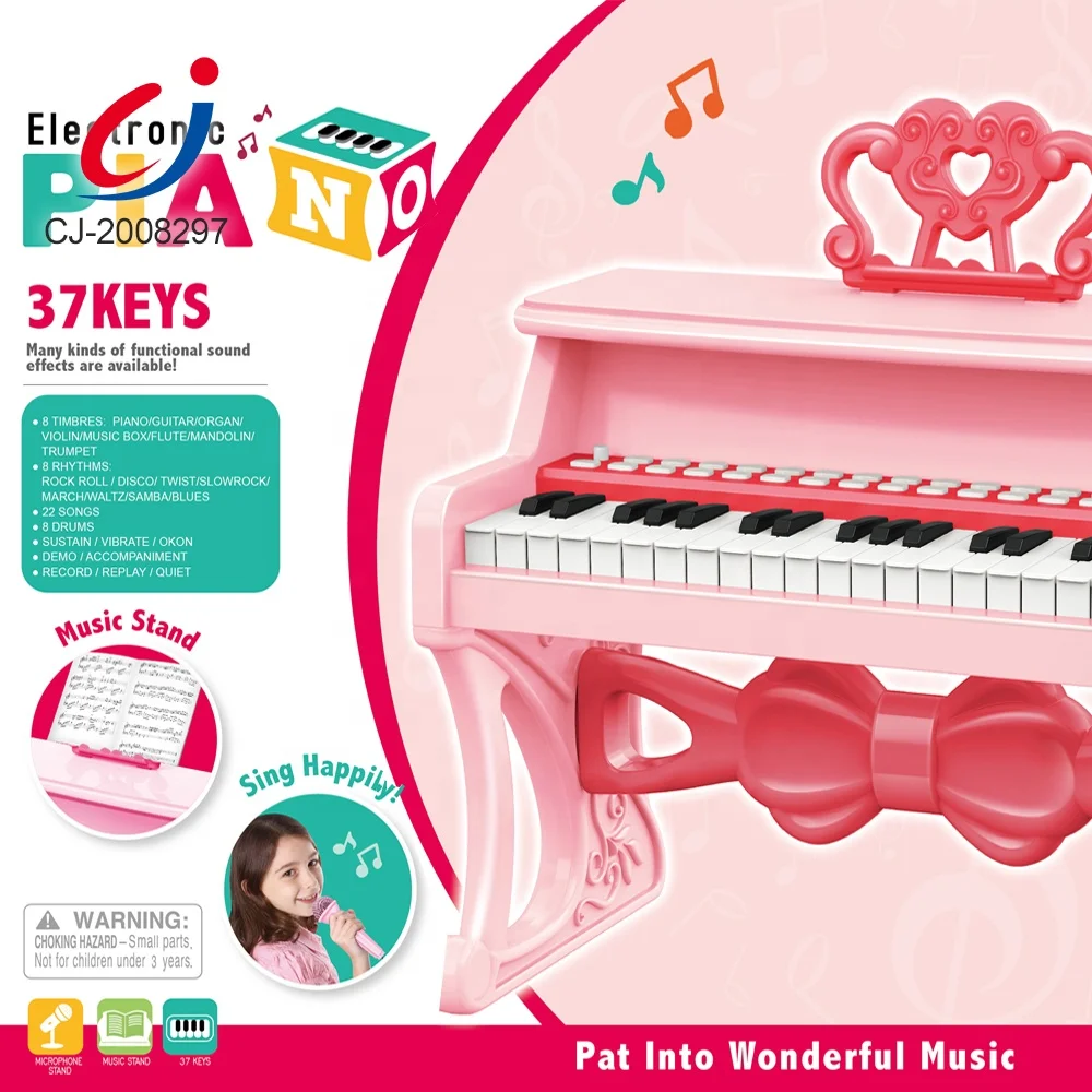 Chengji Electronic Multifunction Plastic Grand Piano for Kids, Musical Keyboard Pink Children Piano With Microphone