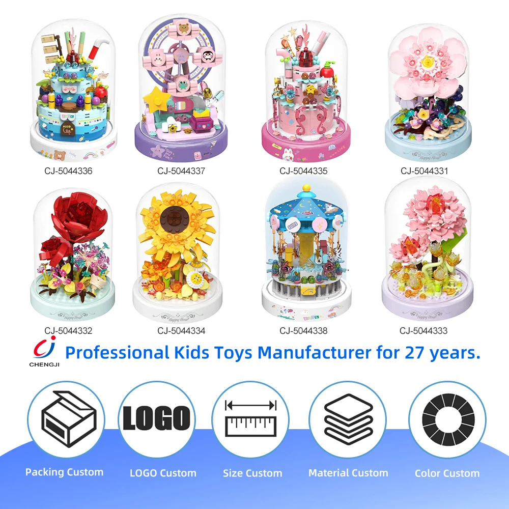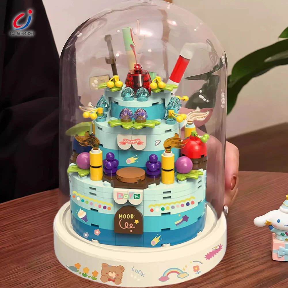 Chengji 3d Puzzle Diy Music Box Kit Cartoon Colorful Assembly Decoration Transparent Dust Proof Birthday Cake Building Blocks