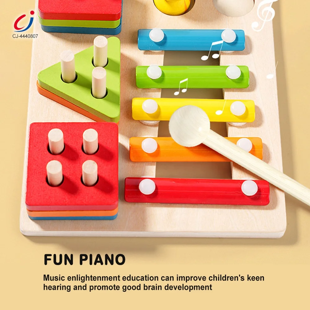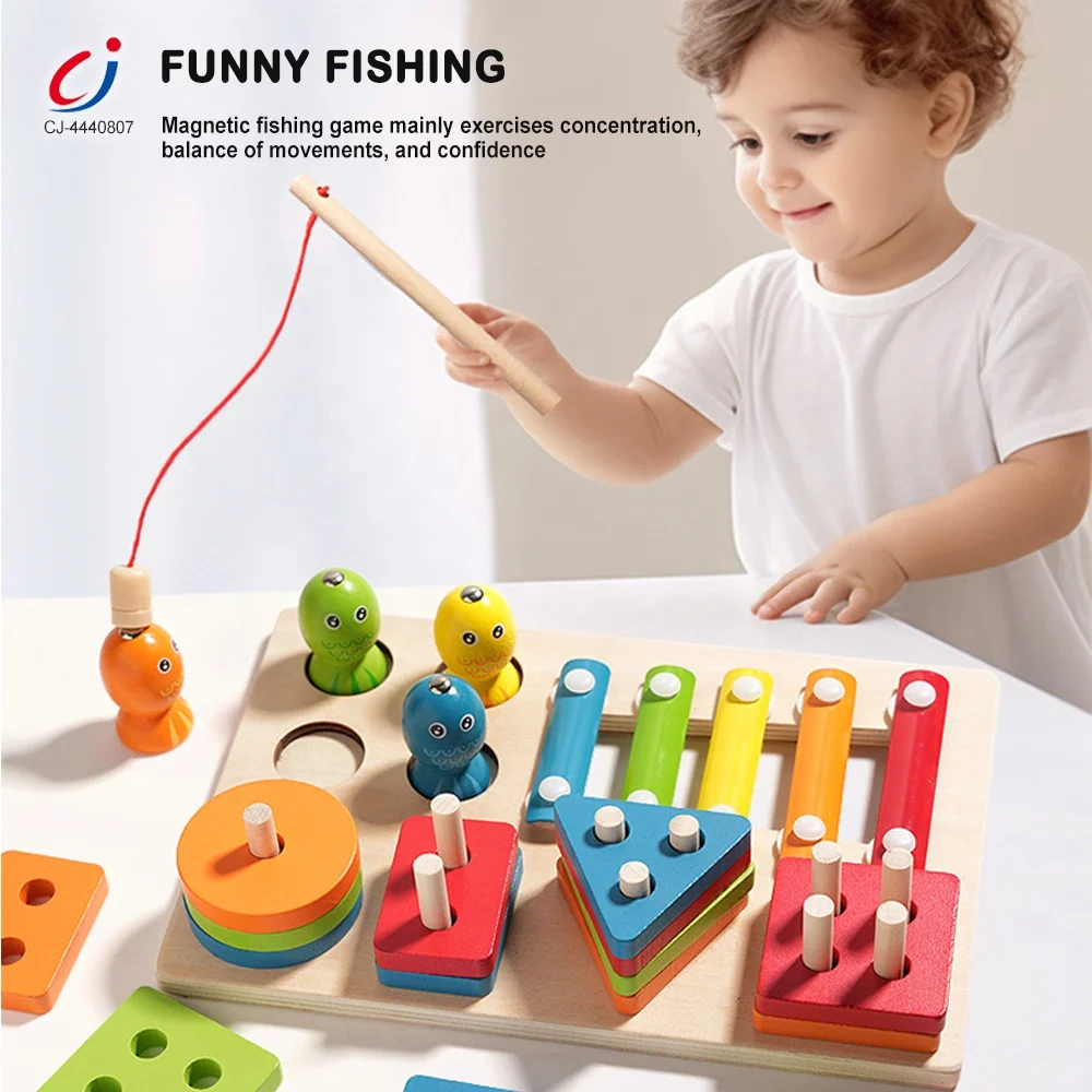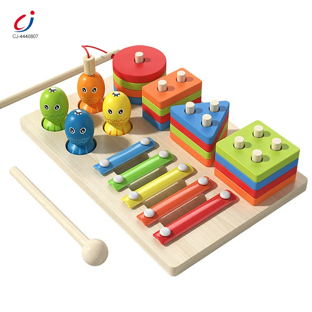 Chengji Wooden Xylophone Toys 3 in 1 Geometric Pairing Fishing Educational Blocks Stacking Wooden Montessori Toys Kit