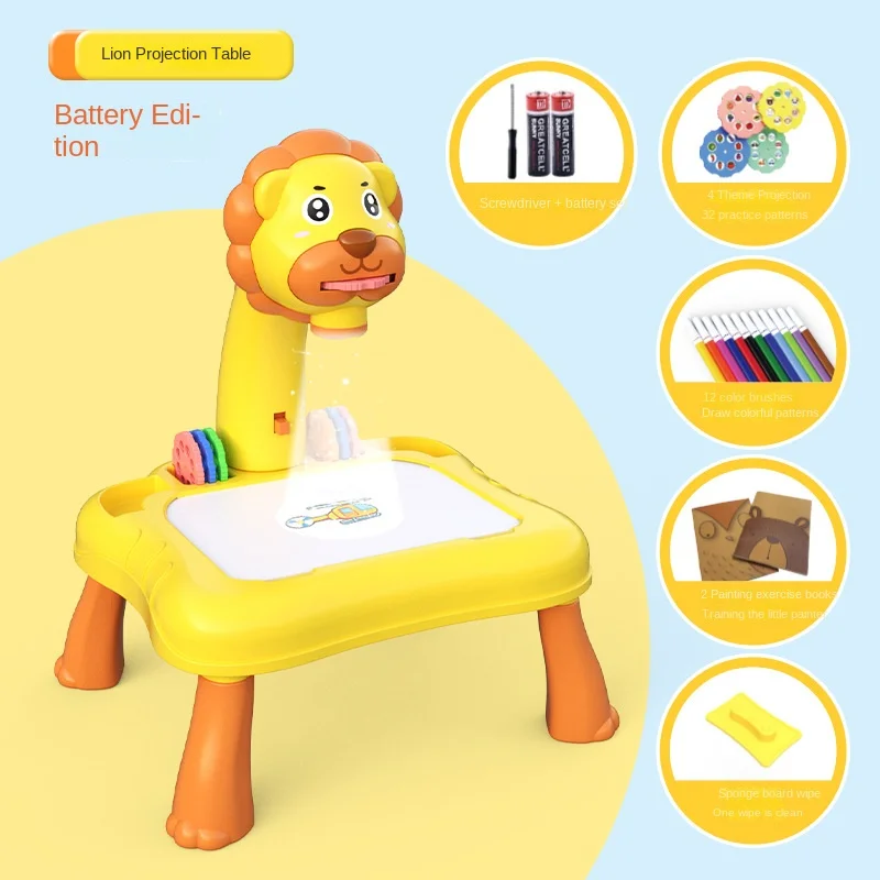 Chengji Projection Drawing Table Lion Cartoon Shape Multi-functional Graffiti Writing Tablet Drawing Toy Set with Light
