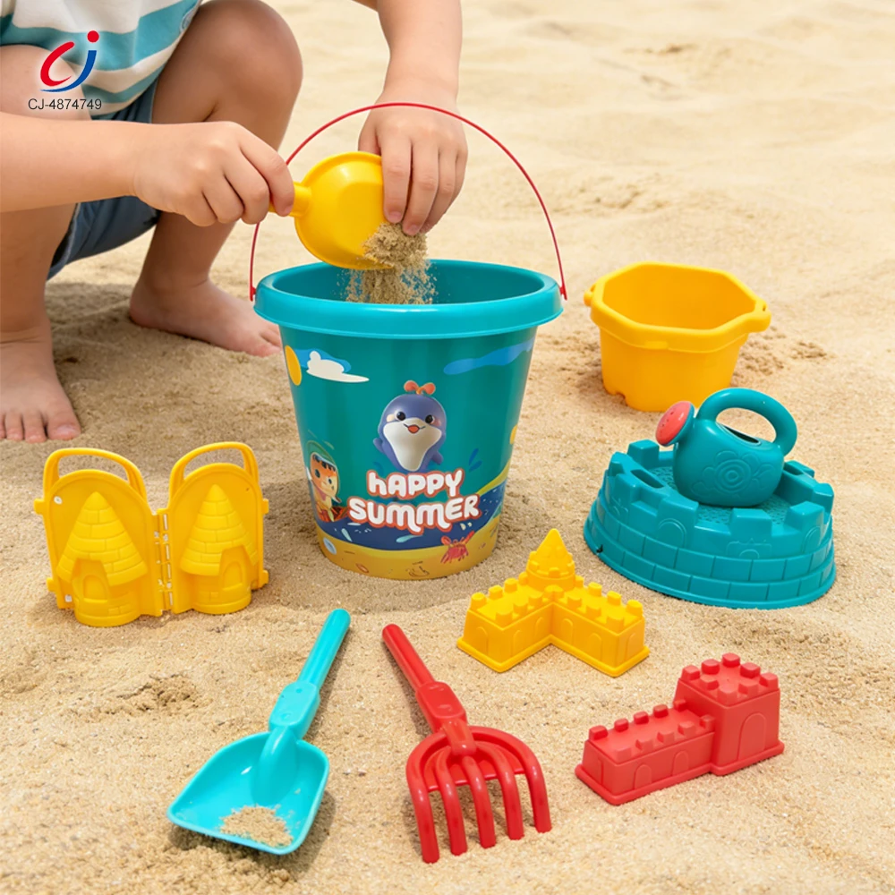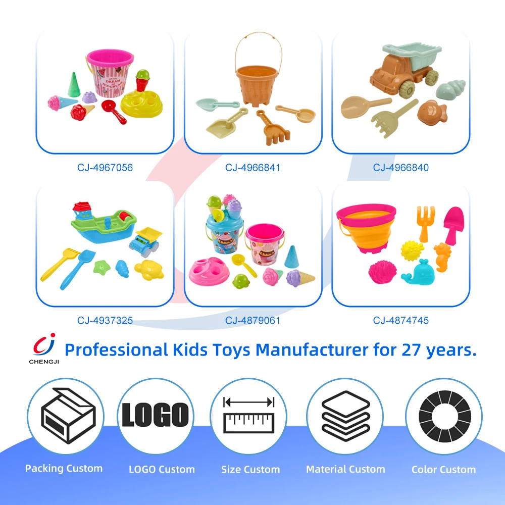 Chengji Beach Toys Castle Molds Foldable Beach Toys Children Castle Beach Bucket Water 8pcs Digging Tool Set Beach Toys with Bag