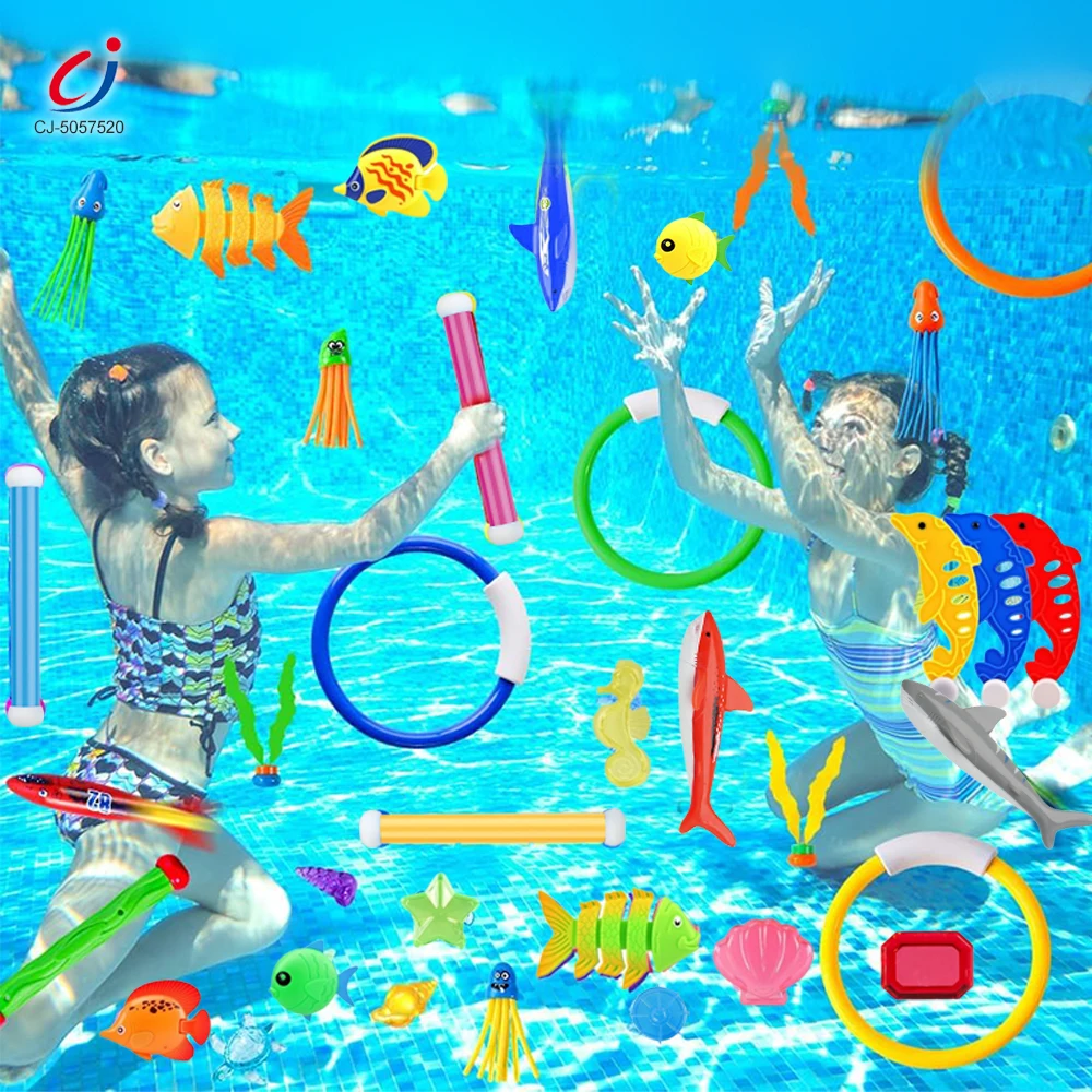 Chengji Pool Toys Diving Rings Swimming 40pcs Summer Plastic Sticks Torpedo Bandits Shark Pool Diving Toys for Kids