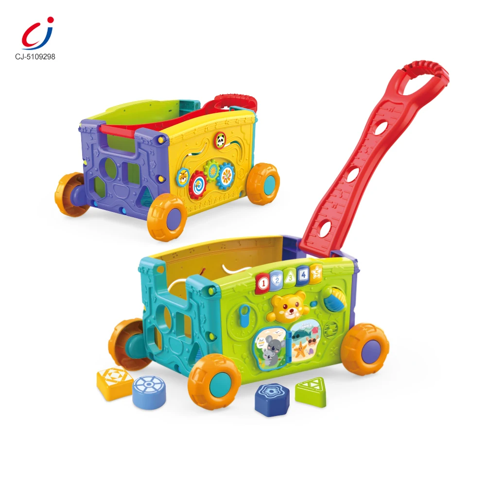 Chengji Children Plastic Toy Cart Cartoon Lighting Multifeature Learning Stand Toy Push Cart Baby Walker with Music Piano Key