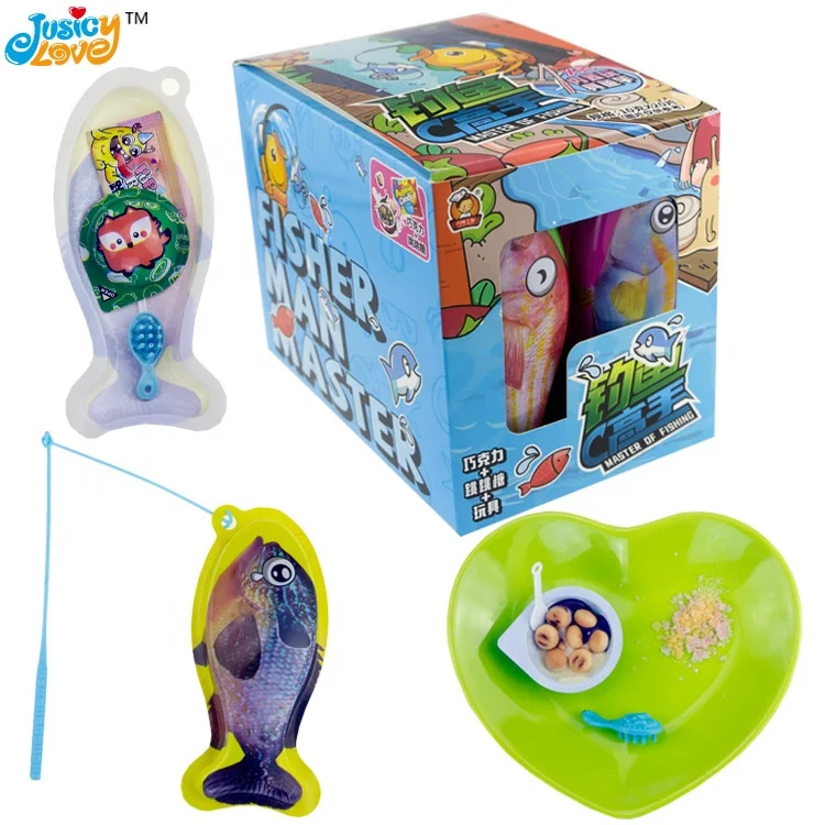 Interesting Fishing Surprise Toy Candy Chocolate Biscuits Cup Popping Candy