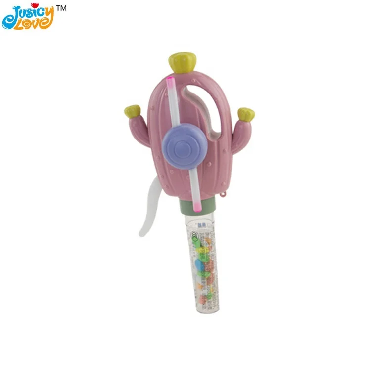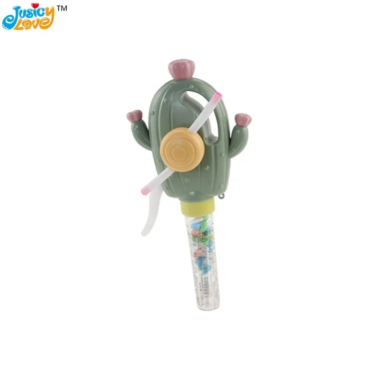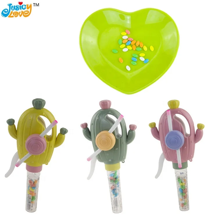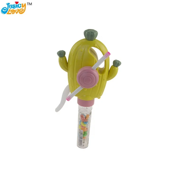High Quality Plastic Novelty Light Cactus Hand Fan Toy With Candy